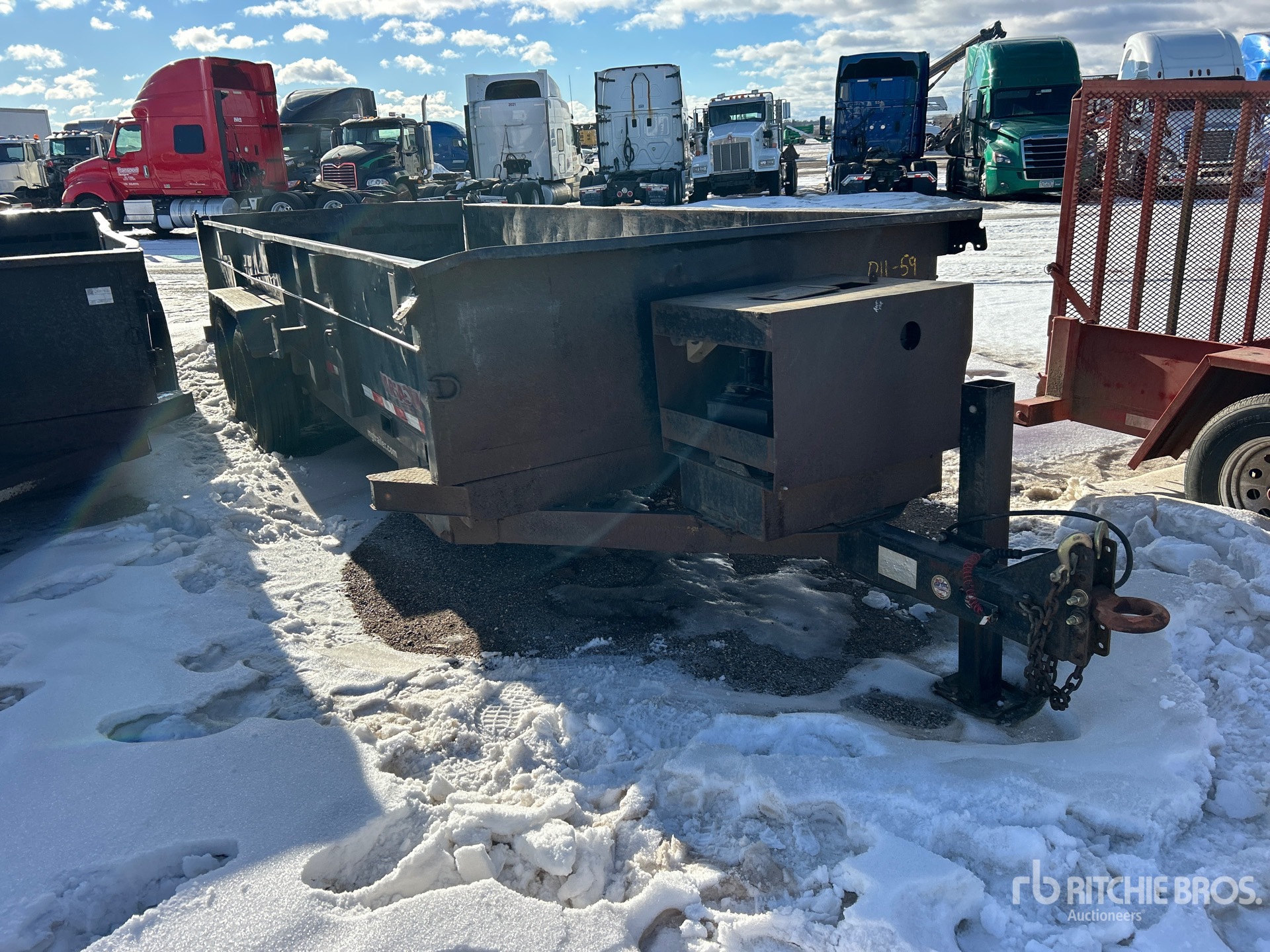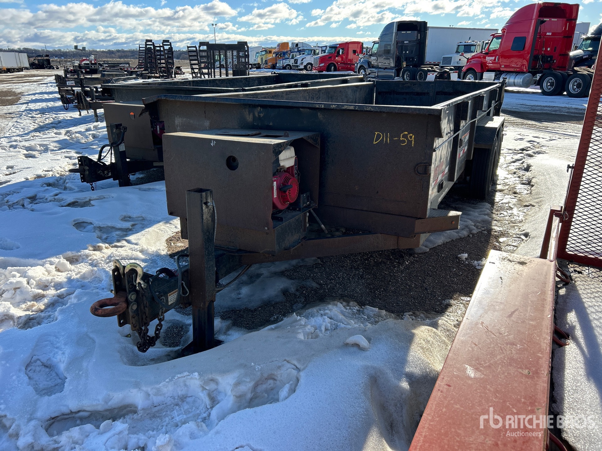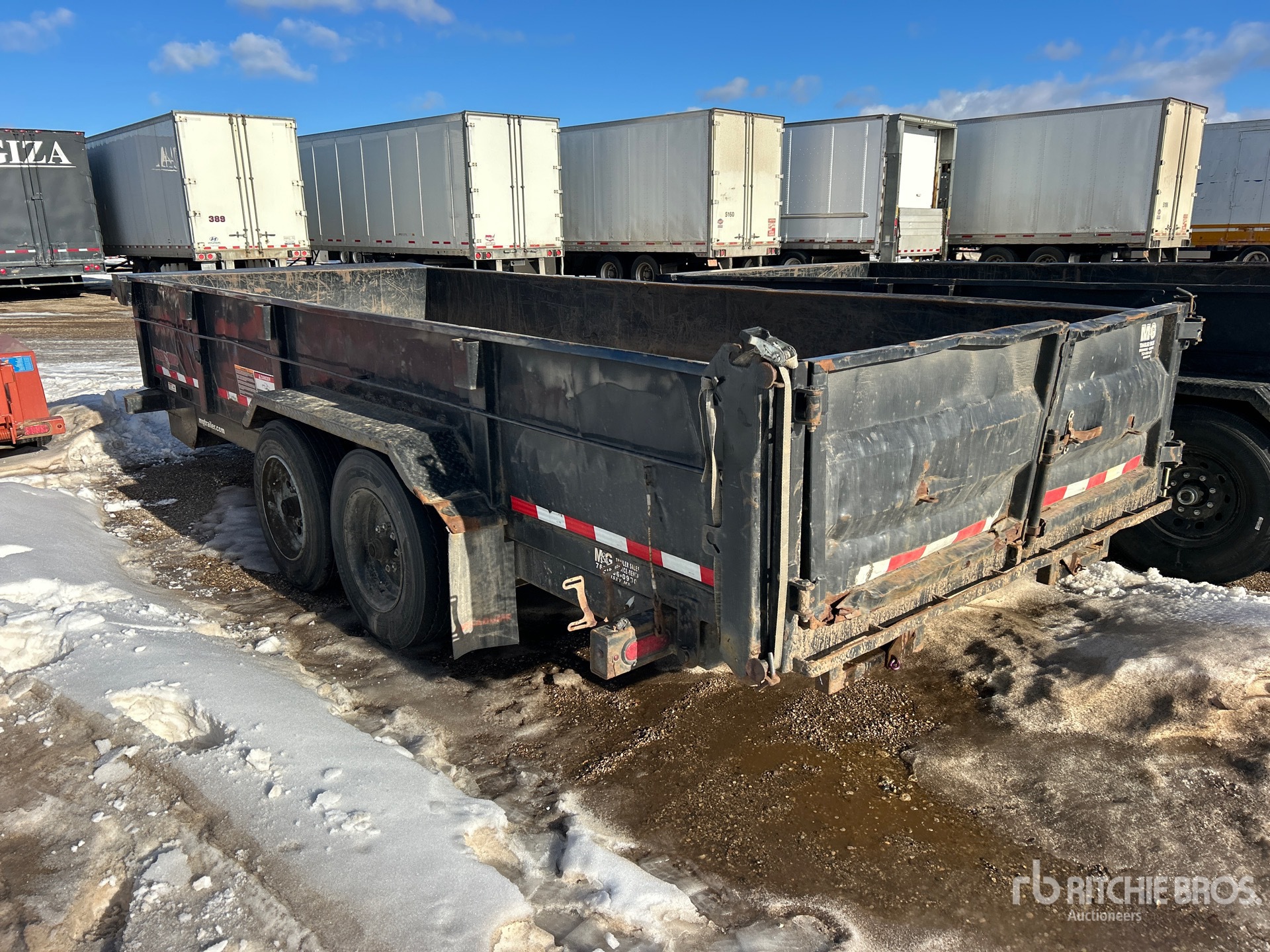 Lunette Ring Hitch, Spring Suspension, Electric Brakes, 18 ft Body, 24 in Side Walls, Steel Body, Split Swing Tailgate, 215/75R17.5 Tires, Equipment-from-Sellenriek-Construction