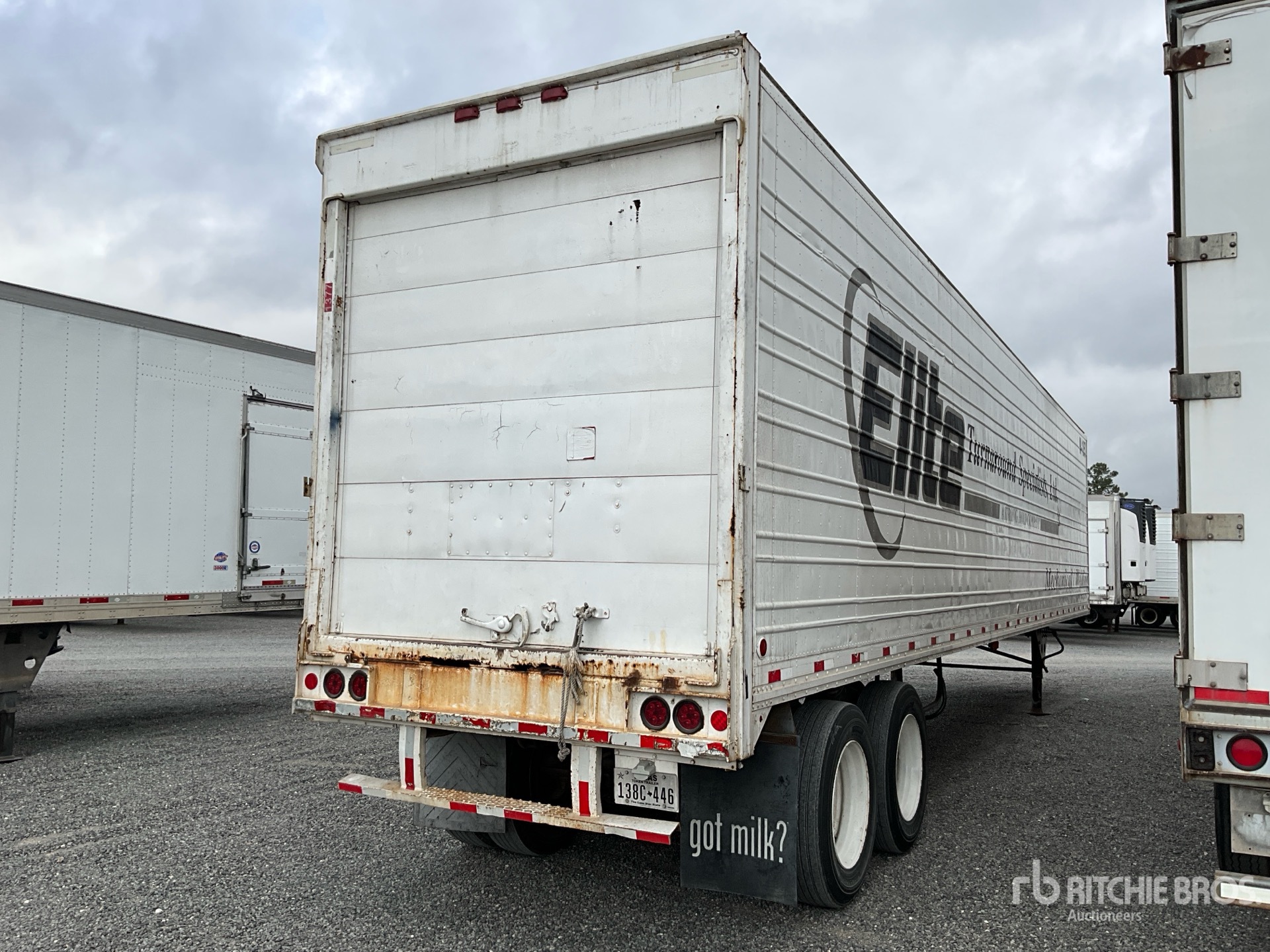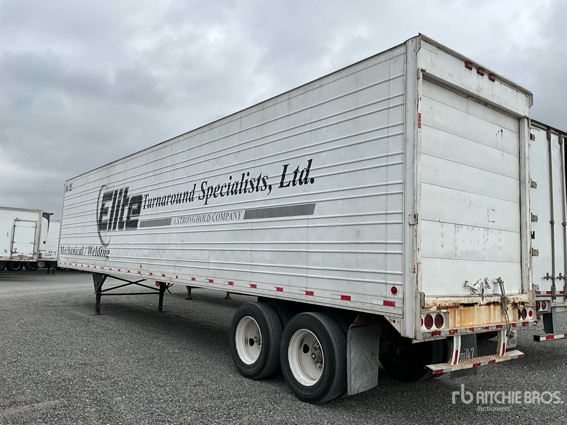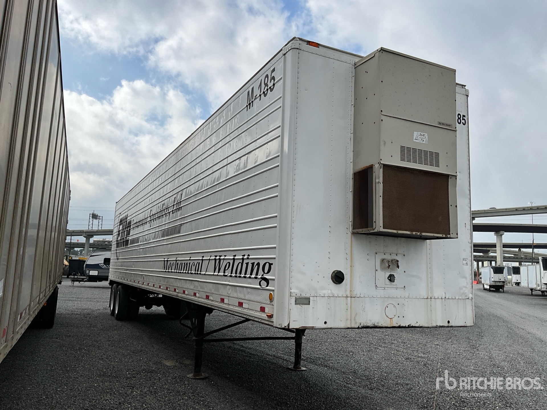 Spring Suspension, Aluminum Floor, Roll-Up Door, 285/75R24.4 Tires, 65000 lb GVWR, Metal shelves and racks. A/C unit (not operationally checked).