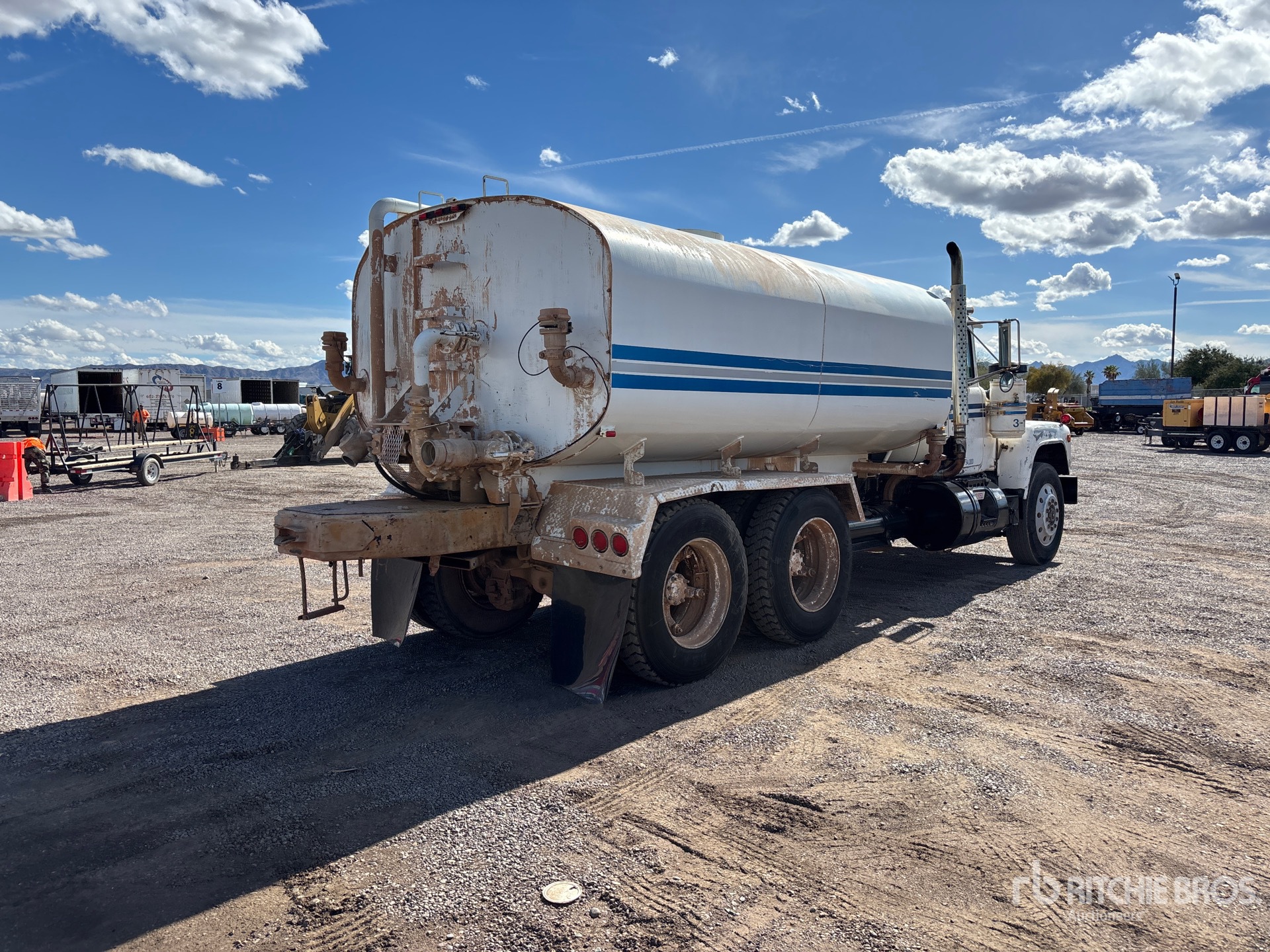 Mack Diesel Engine, 963 Engine hrs, Manual Transmission, Aluminum Front Wheels, 11R24.5, Spring Suspension, 205 in Wheelbase, PTO, 4000 gal Tank, PTO Driven Pump, Hose Reel, Front Spray, Rear Spray, Side Spray
