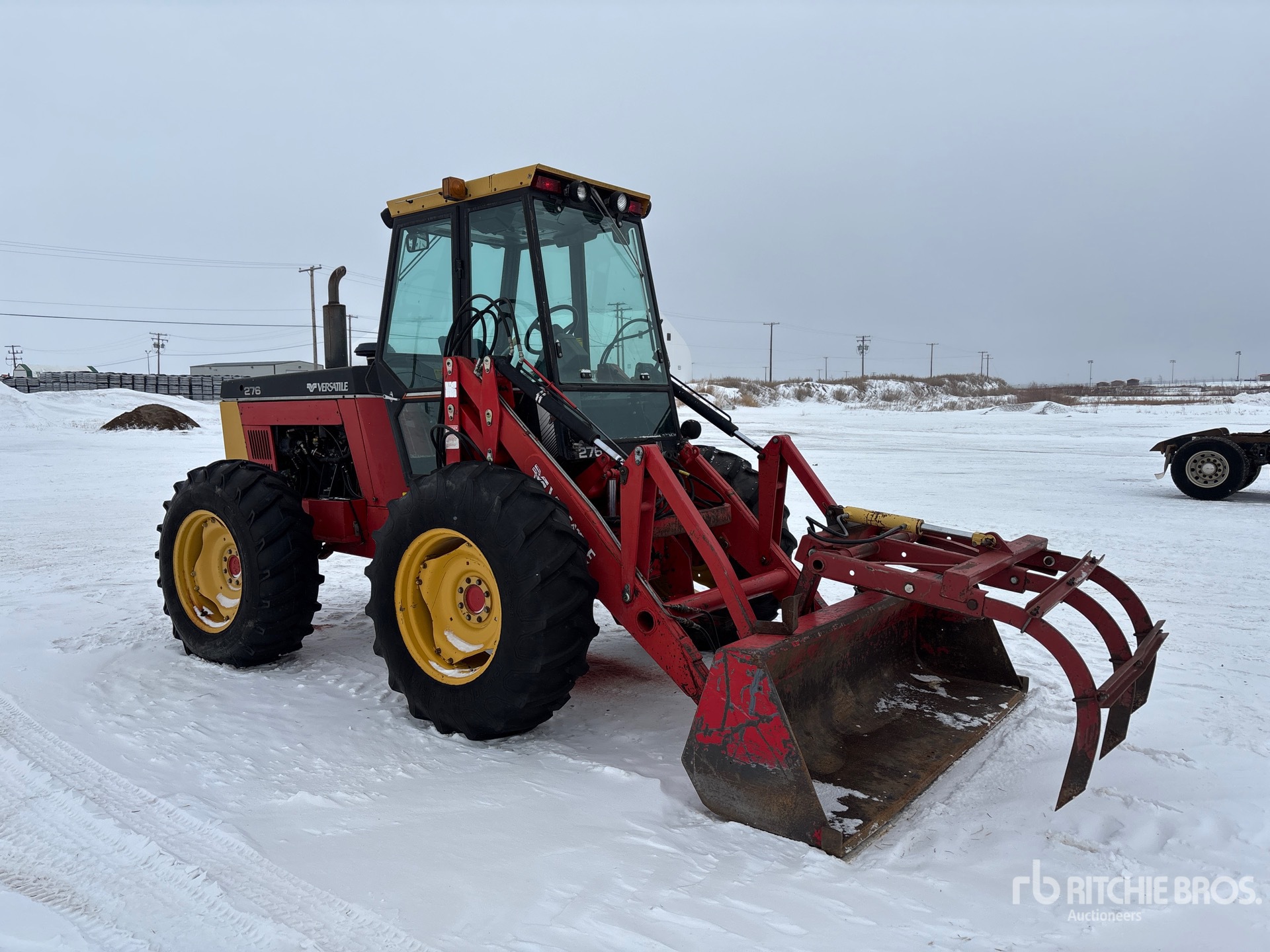 Enclosed Cab, Hydrostatic Drive, Versatile 2360 Loader, 96 in Grapple Bucket, Front PTO, 3 Front Remotes, 1 Rear Remotes, 16.9-28 Front Tires