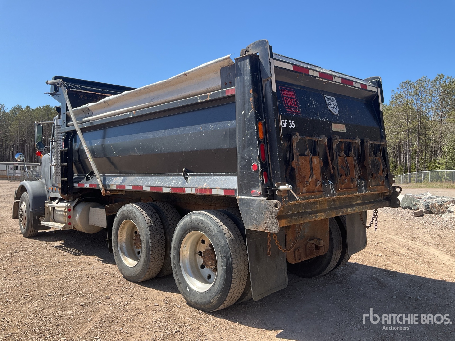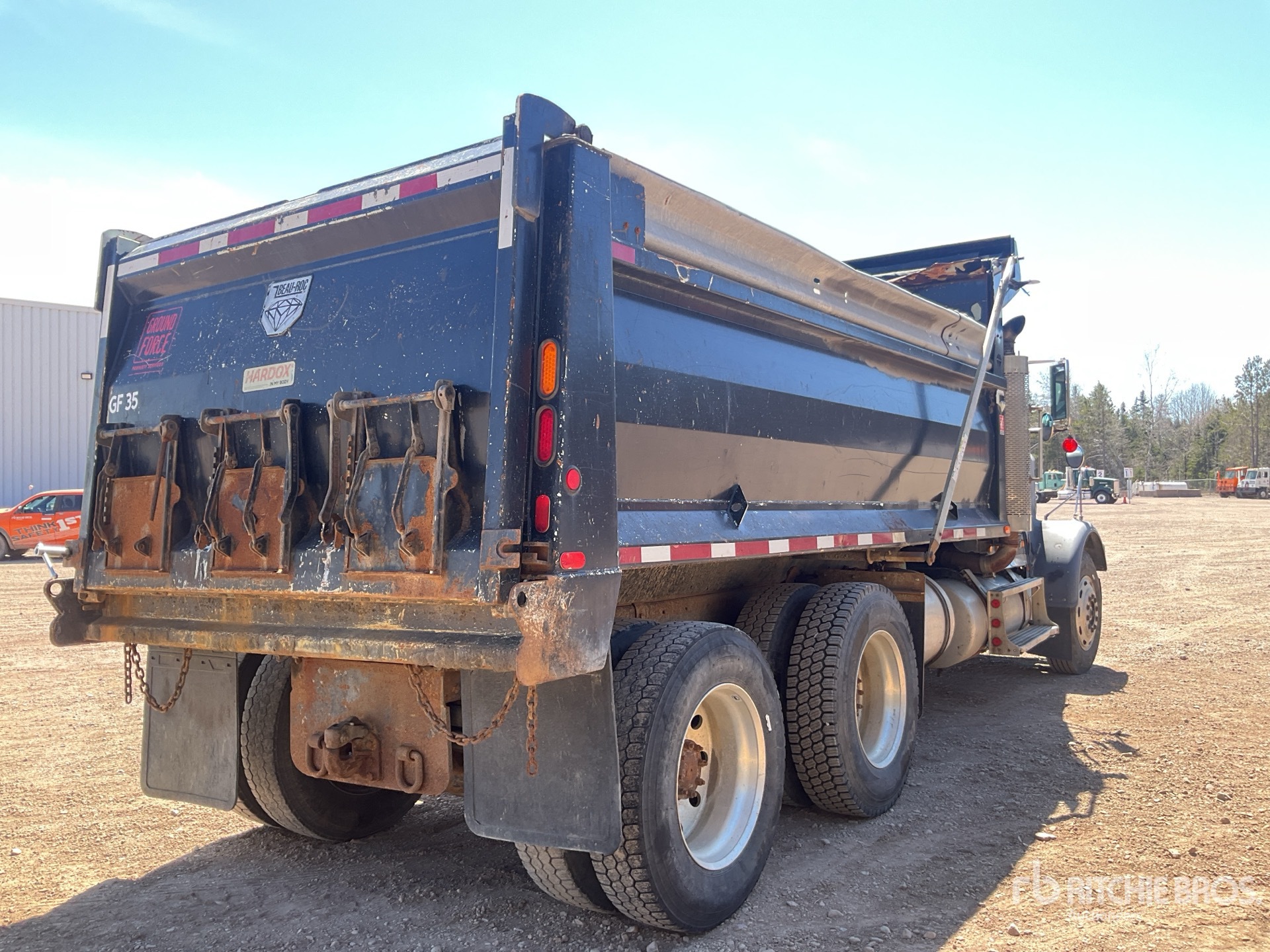 Cat 6 Cylinder Diesel Engine, Engine Brake, Eaton Fuller 15-Speed Manual Transmission, Differential Lock, Aluminum Outer Wheels, 11R24.5, Air Ride Suspension, 226 in Wheelbase, PTO, BEAU-ROC 16 ft 6 in Long x 4 ft 4 in High Hardox Body, Air Powered Roll Tarp, Triple Tailgate Chutes, Pintle Hitch