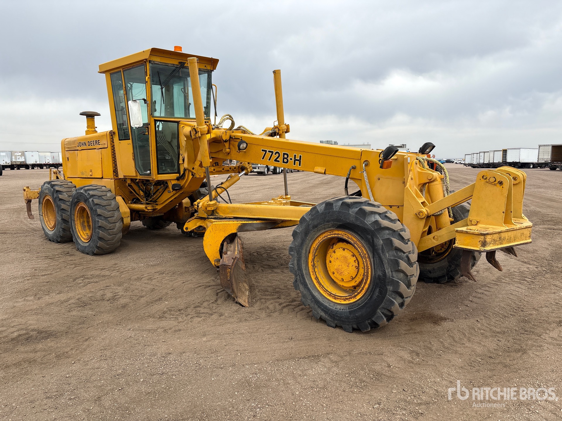 Located in Lane 3 Spot 4, Enclosed Cab, 14 ft / 4.27 m Moldboard, Front Scarifier, Ripper, 17.5R25 Tires