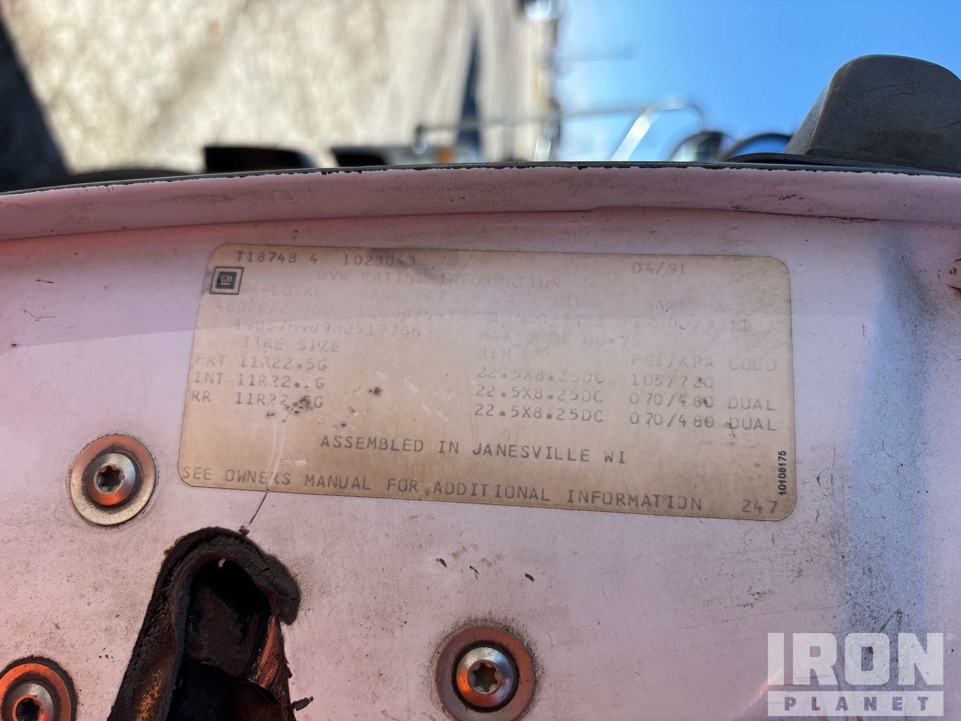 Cat 3116 6 Cylinder 6.6 L Diesel 160 kW Engine, 1991 US EPA Label, 8869 Engine hrs, Automatic Transmission, Differential Lock, 12080 lb Front Axle, 34000 lb Rears, 46080 lb GVWR, 11R22.5, Spring over Walking Beam Suspension, 176 in Wheelbase, PTO, Peabody Gallion 13 ft Long x 3 ft 3 in High Steel Body, Pintle Hitch