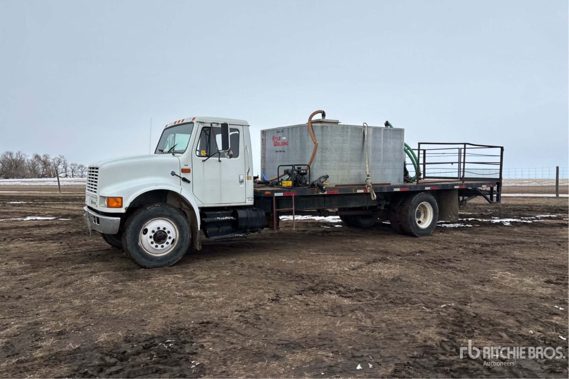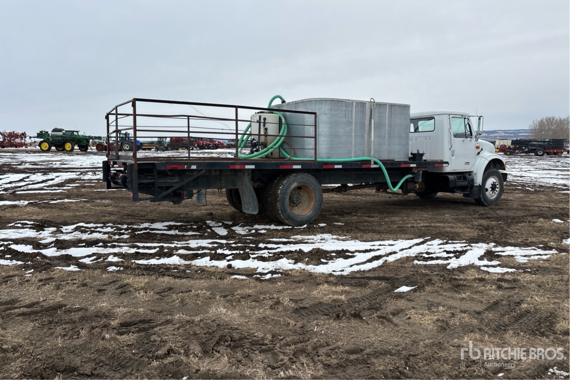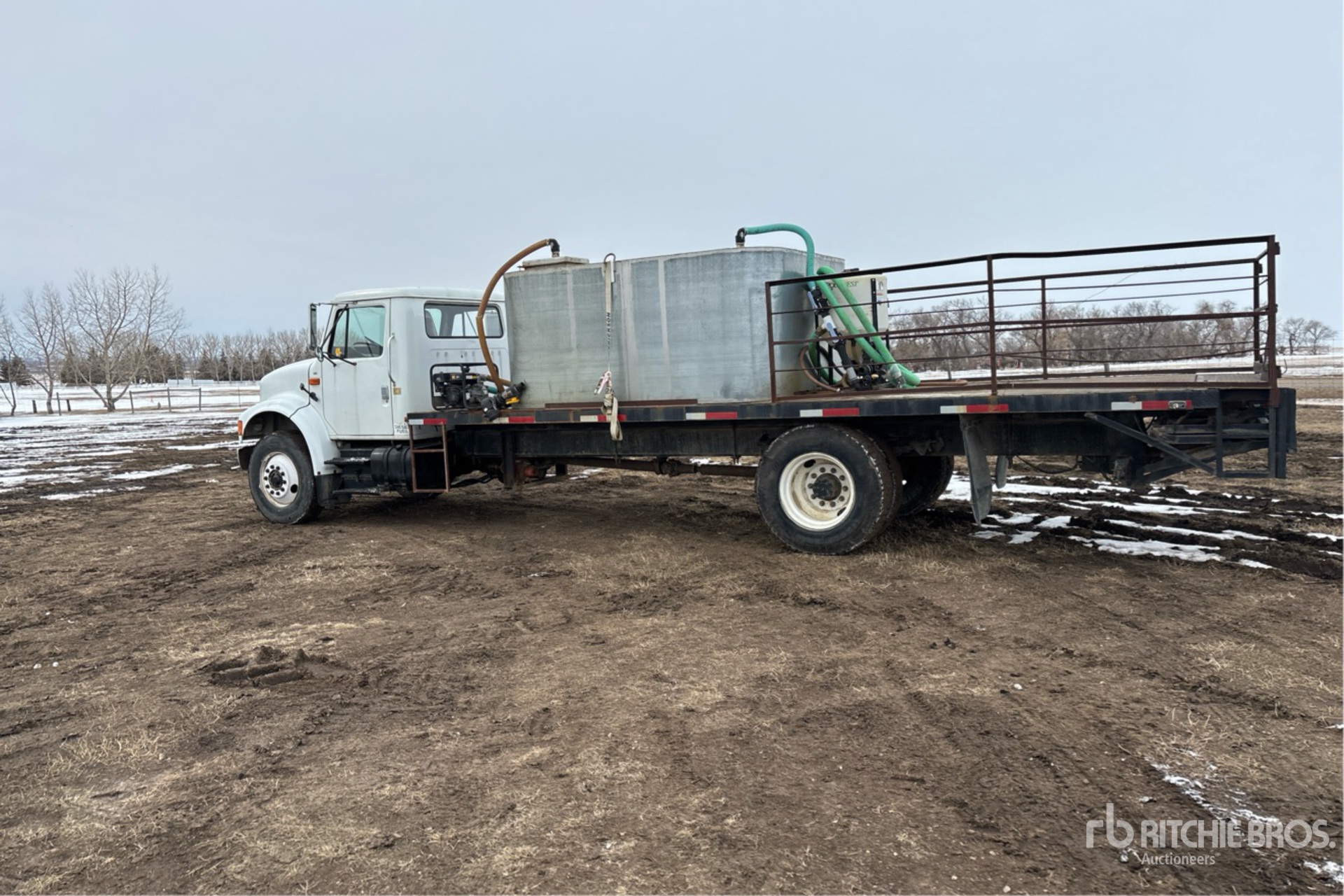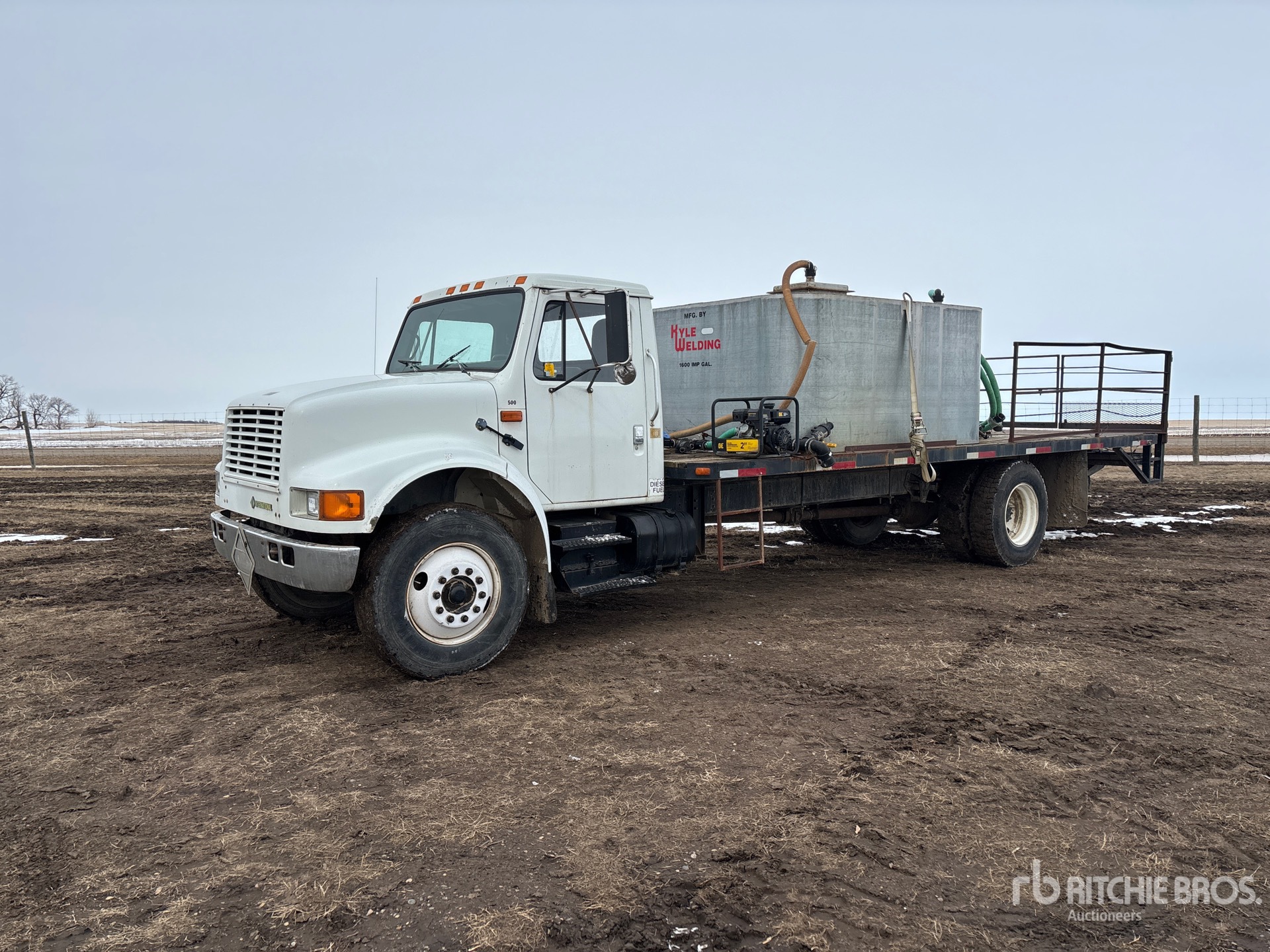 International DT466 7.6 L Diesel 195 hp Engine, 1992 US EPA Label, CARB Compliant, 4824 Engine hrs, 7-Speed Manual Transmission, 12000 lb Front Axle, 19000 lb Rears, 21776 lb GVWR, 11R22.5, Spring Suspension, 236 in Wheelbase, PTO, 24 ft x 96 in Bed, 2 in Pump, Chem Handler, 1600 gal Galvanized Tank, Filtration Unit,