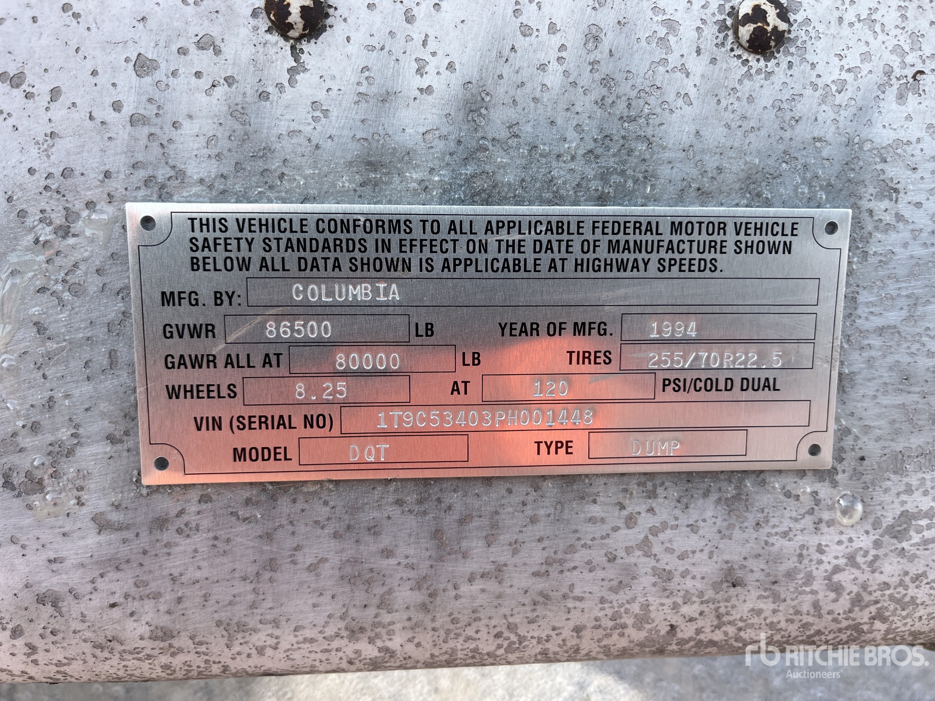 Air Ride Suspension, Air Brakes, 255/70R22.5 Tires, 86500 lb GVWR