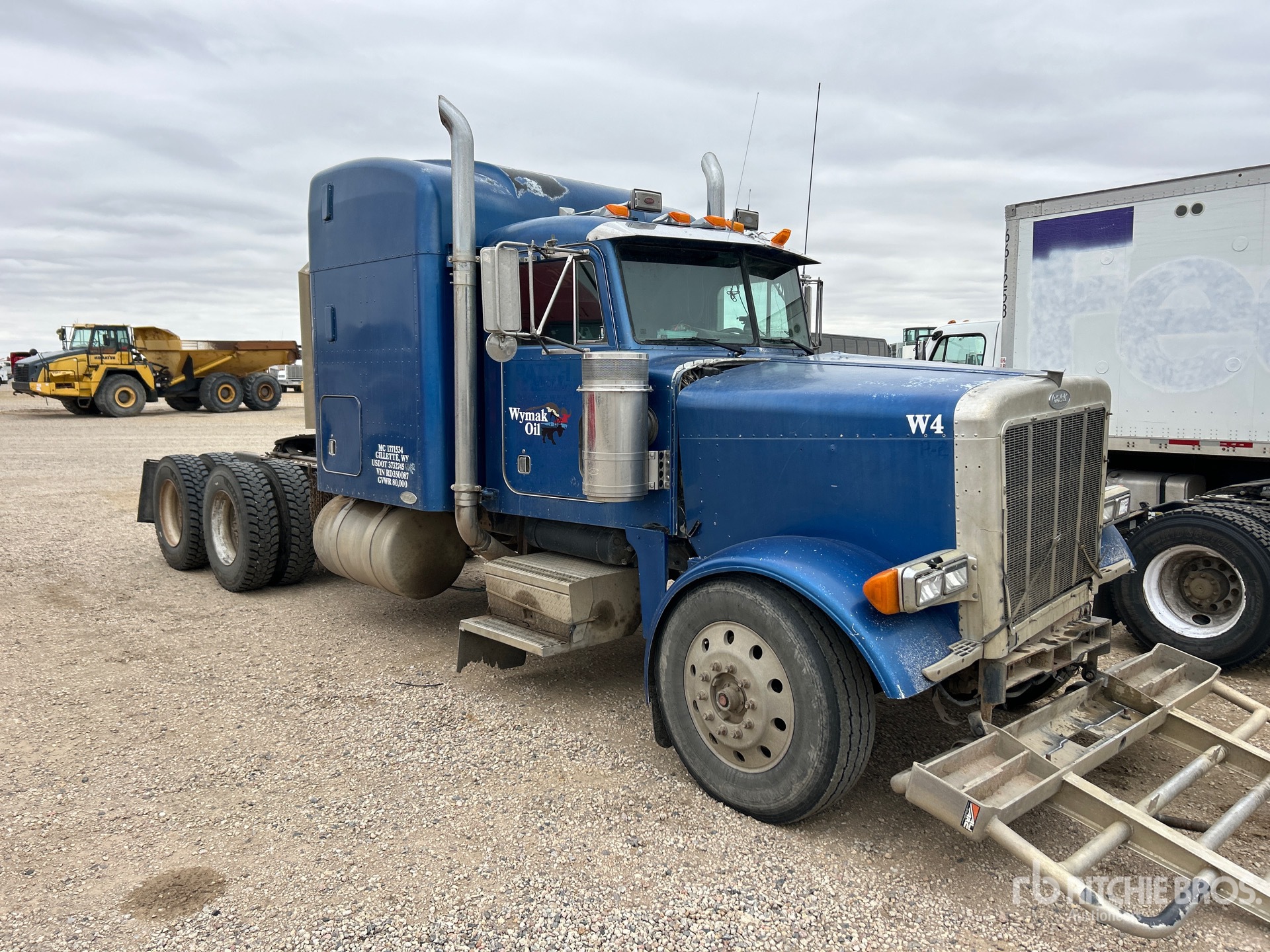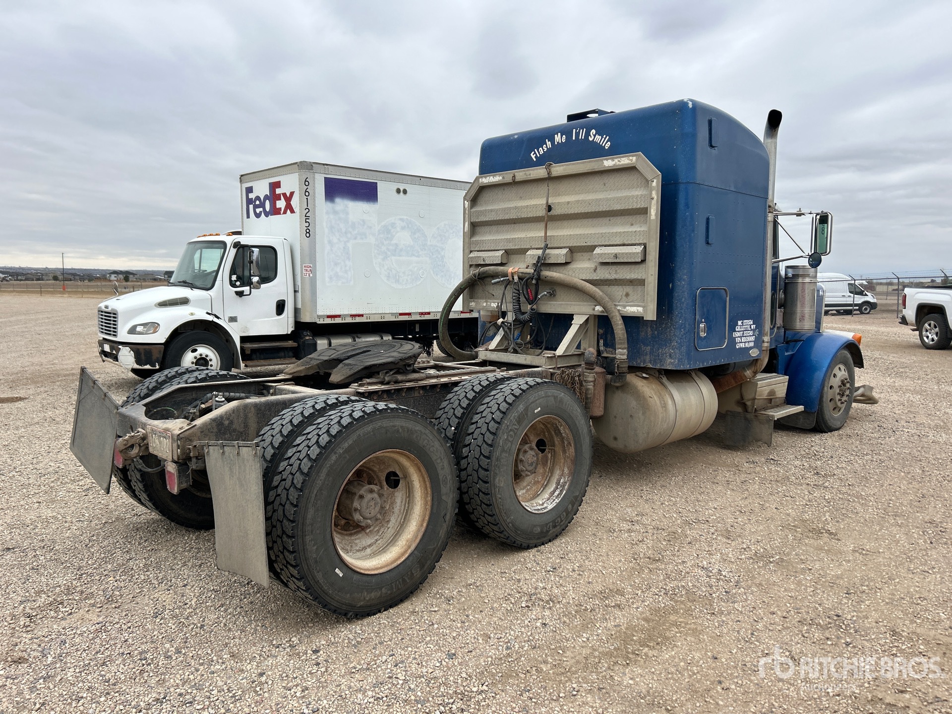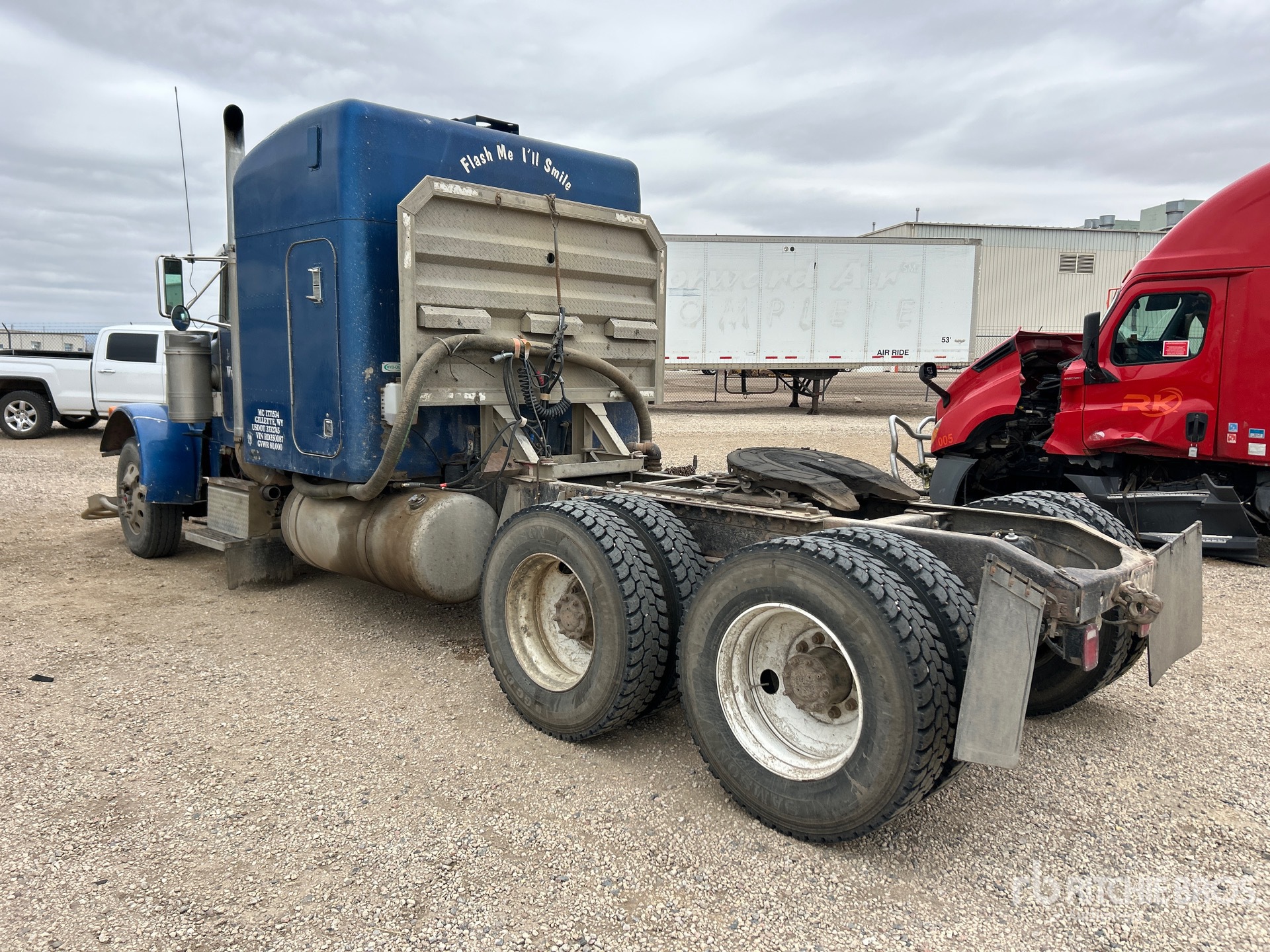 Cat 3406 Engine, Manual Transmission, 12000 lb Front Axle, 34000 lb Rears, 46000 lb GVWR, Engine Brake, 63 in Mid Roof Sleeper Cab, 250 in Wheelbase, Air Suspension, 11R24.5, Air Sliding 5th Wheel, Dual Fuel Tanks, Headache Rack