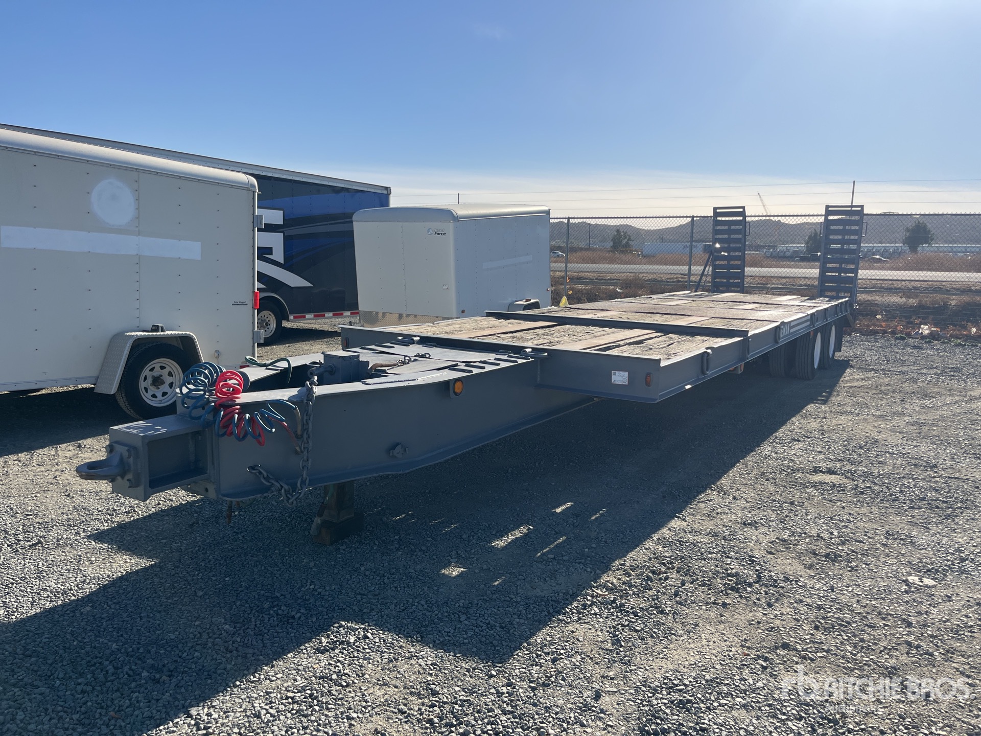 Lunette Ring Hitch, Spring Suspension, Air Brakes, 26 ft Main Deck, 4 ft Fixed Dovetail, 96 in Usable Deck Width, 96 in Overall Deck Width, Deck Over Tires, Manual Ramps, Wood Flooring, 235/75R17.5 Tires