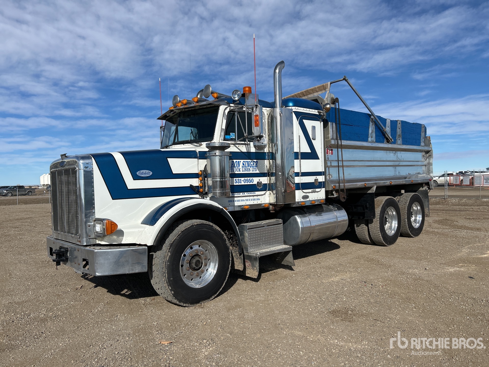 Detroit Series 60 6 Cylinder 12.7 L Diesel 430 hp Engine, 9723 Engine hrs, Engine Brake, Eaton Fuller Manual Transmission, Differential Lock, 8500 kg Front Axle, 19960 kg Rears, 28460 kg GVWR, Air Ride Cab, 36 in Flat Top Sleeper Cab, Aluminum Wheels, 385/65R22.5 Front Tires, 11R24.5 Rear Tires, Air Trac Air Ride Suspension, 228 in Wheelbase, PTO, 15 ft Long x 5 ft High Aluminium Body, Pintle Hitch