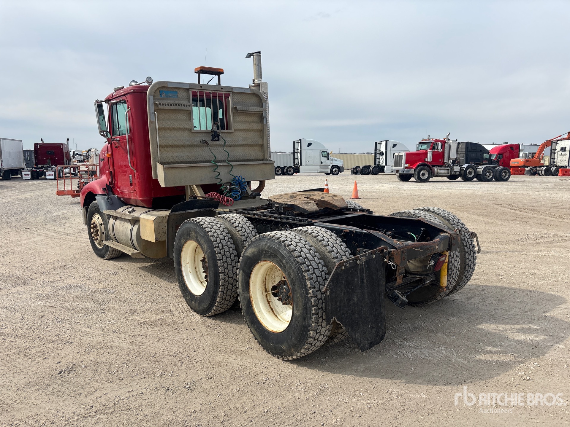 Located in Lane 20 Spot 7, Cat 272 hp Engine, 1996 US EPA Label, 007397 Engine hrs, 10-Speed Manual Transmission, 12000 lb Front Axle, 40000 lb Rears, 52000 lb GVWR, Engine Brake, 170 in Wheelbase, Air Suspension, 11R22.5, Air Sliding 5th Wheel, Auto Lube, Headache Rack