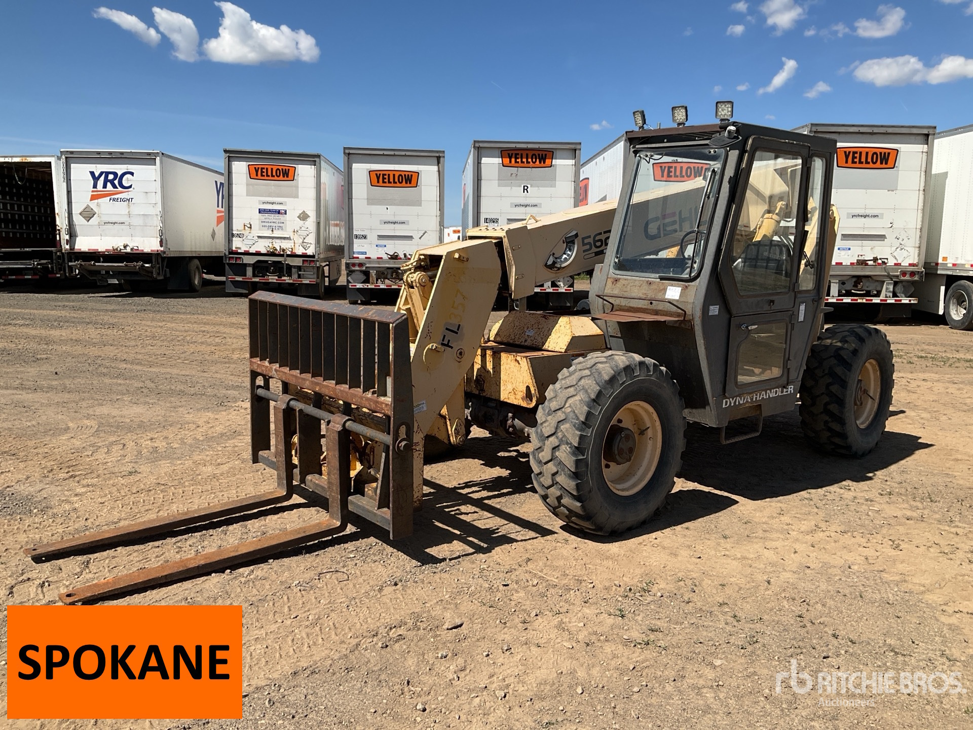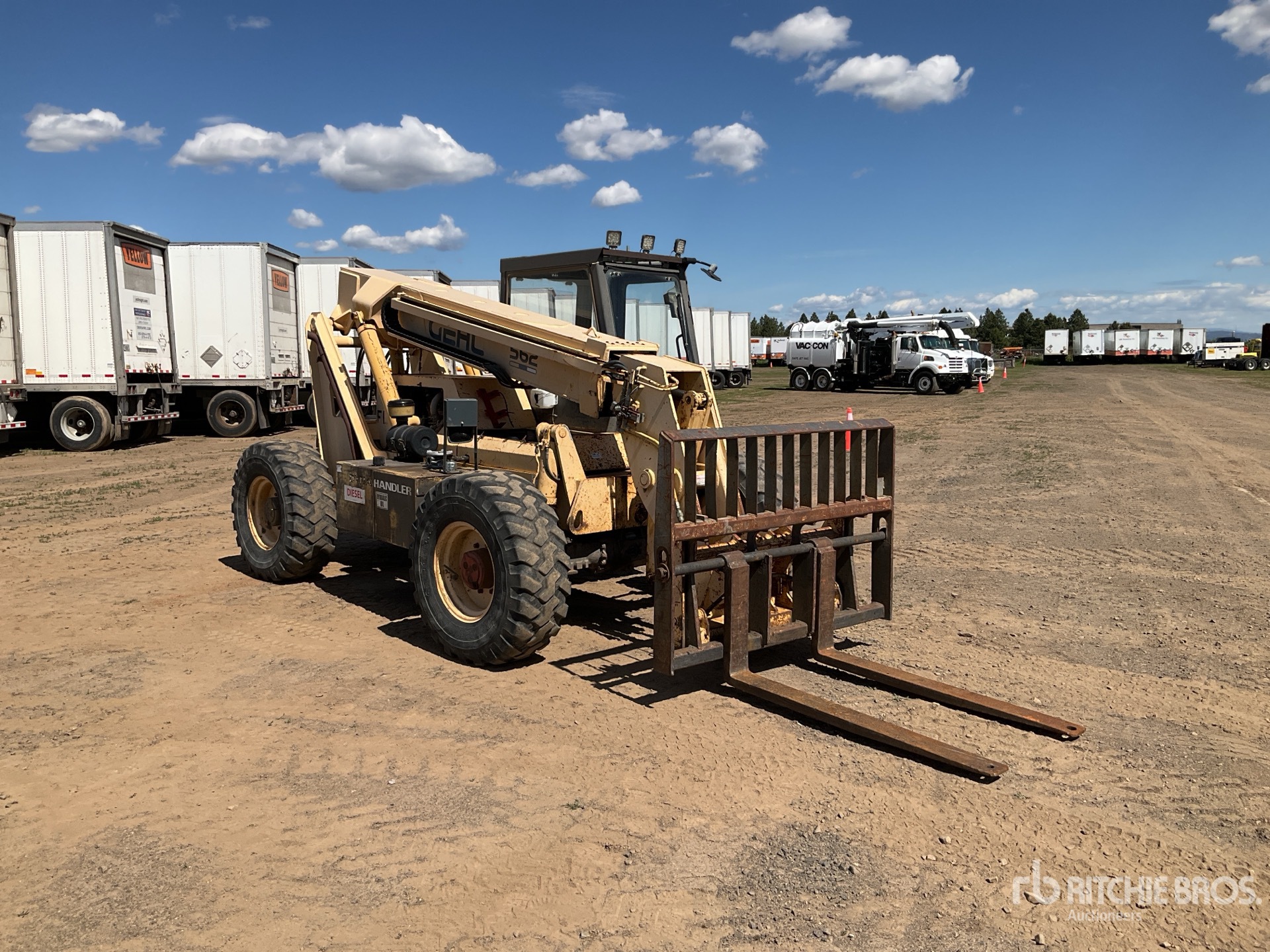 Enclosed Cab, 24 ft Max Lift Height, 6000 lb Max Lift Capacity, 54 in Forks, Manual Coupler, Frame Leveling, Auxiliary Hydraulic Plumbing, 405/70R20 Tires