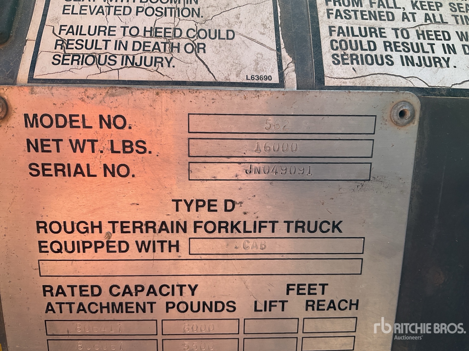 The detailed equipment information is limited in scope, and Ritchie Bros. Auctioneers has not inspected any aspects or components of the equipment other than those expressly set forth herein. Unless expressly stated, we make no representations or warranties, express or implied, concerning the equipment or its components, including without limitation any representations or warranties concerning functionality, conformity or compliance with any safety standard or requirement of any applicable authority or regulatory body, fitness for any particular purpose, or merchantability. You are strongly advised to perform your own detailed inspection of the equipment prior to bidding.