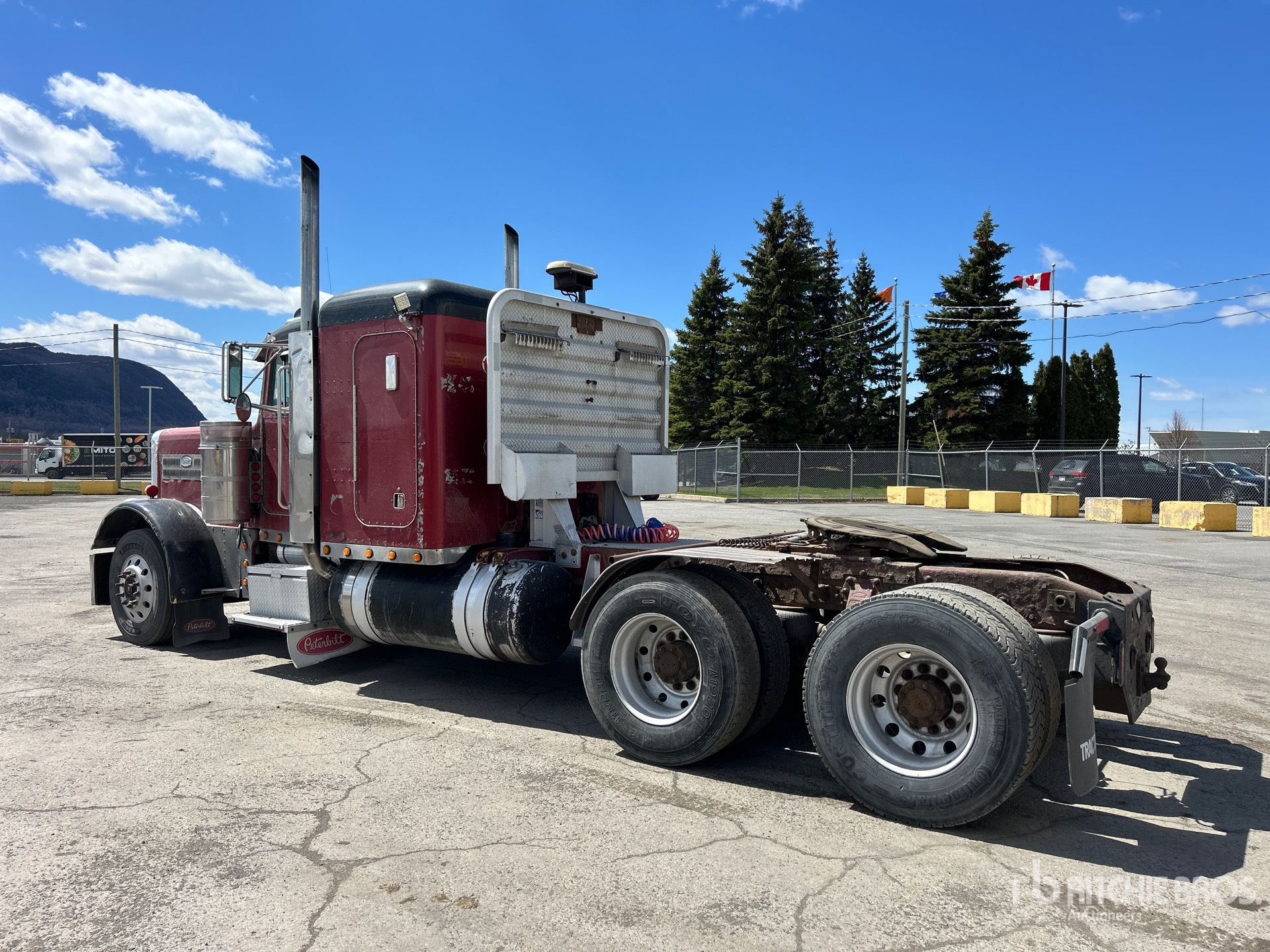 Detroit Series 60 Engine, 47206 Engine hrs, Eaton Fuller 18-Speed 12000 lb Front Axle, 40000 lb Rears, 52000 lb GVWR, Engine Brake, Differential Lock, 48 in Flat Top Sleeper Cab, 245 in Wheelbase, Air Suspension, 11R22.5, Air Sliding 5th Wheel, Dual Fuel Tanks, Headache Rack