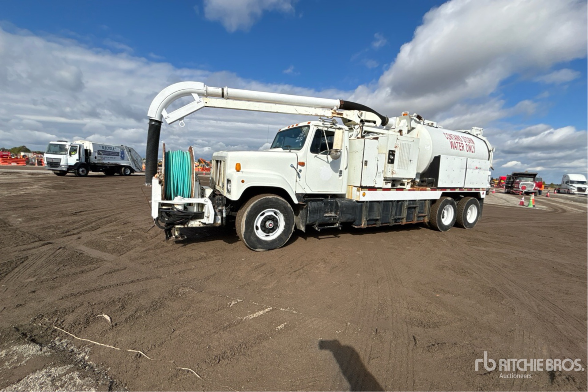 International AL275 8.7 L Diesel 275 hp Engine, US EPA Label, Allison Automatic Transmission, 20000 lb Front Axle, 40000 lb Rears, 60000 lb GVWR, 425/65R22.5 Front Tires, 11R22.5 Rear Tires, Hendrickson Suspension, 249 in Wheelbase, Hoist, Front Hose Reel, Hydraulic Tailgate Locks, Telescopic Boom, 8 in Suction Hose, Bean Pump w/ John Deere Engine, Remote Control w/Cord