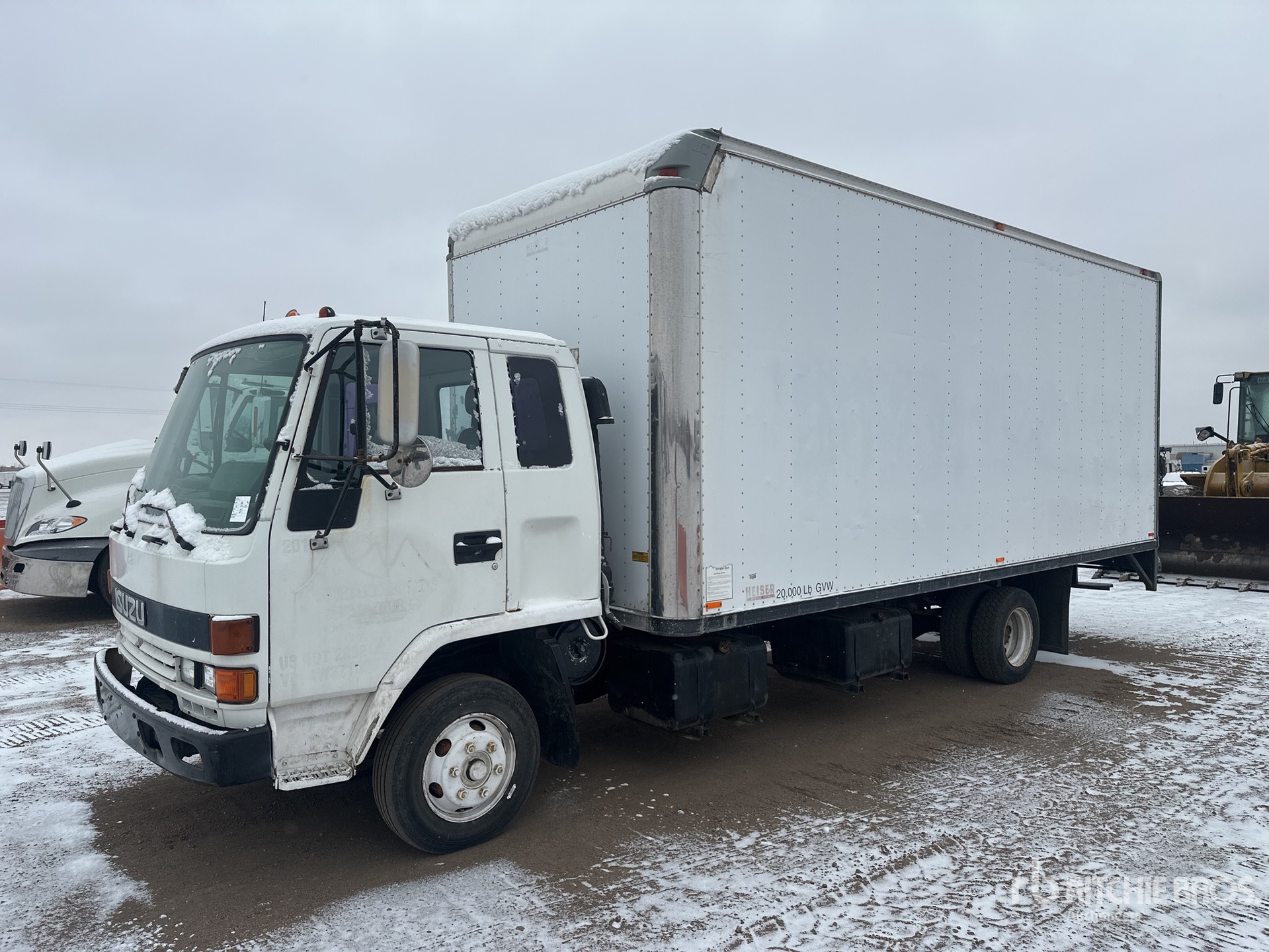 Isuzu 6HE1XN 6 Cylinder 7.1 L Diesel 200 hp Engine, 1997 US EPA Label, Automatic Transmission, 7060 lb Front Axle, 13680 lb Rears, 19500 lb GVWR, 215/75R17.5 Front Tires, 215/75R17.5 Rear Tires, Spring Suspension, 192 in Wheelbase, Heiser 20 ft x 96 in Wide x 95 in High Body, Liftgate, EQUIPMENT-FROM-WESTERN-STATES-CONTRACTING-CORP