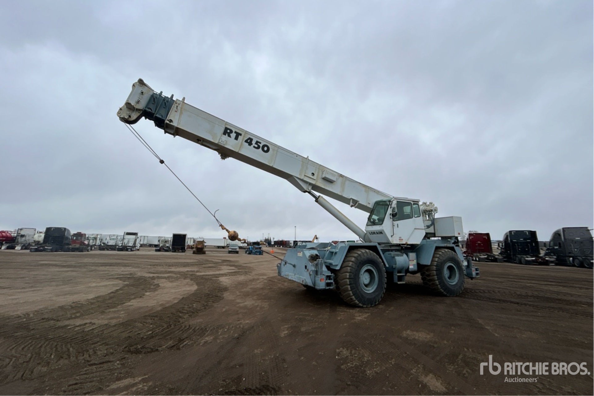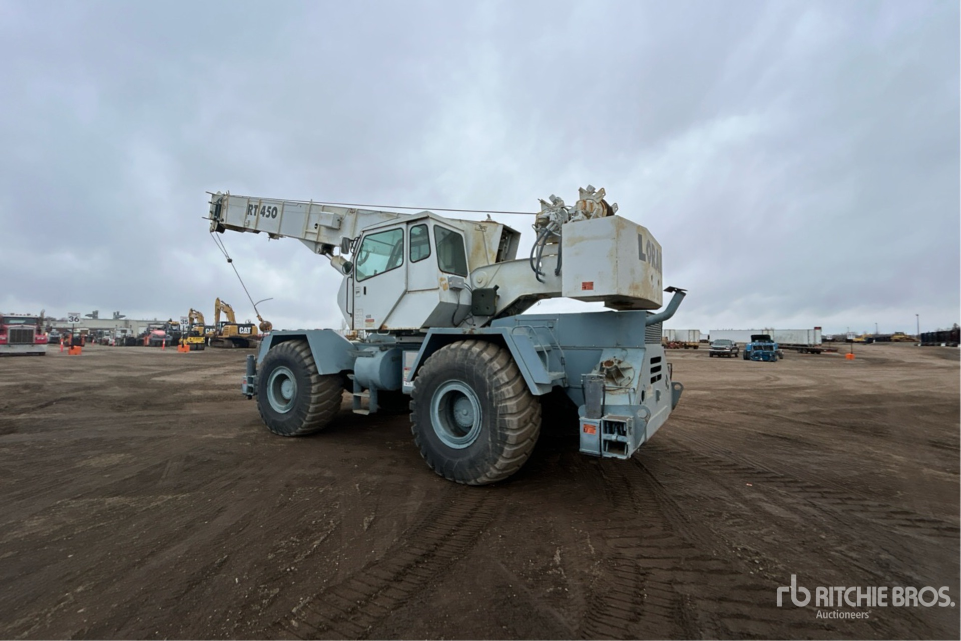 Tilt Cab, Load Moment Indicator, 1997 US EPA Label, Cat 6 Cylinder Diesel Engine, 33 ft Minimum 105 ft Maximum Boom Length, Overhaul Ball