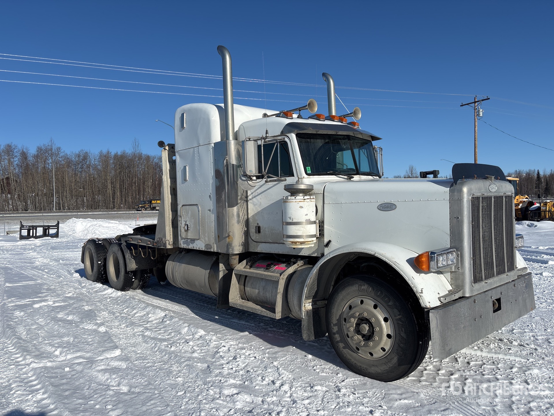 Eaton Fuller Manual Transmission, 12000 lb Front Axle, 40000 lb Rears, 52000 lb GVWR, Differential Lock, 48 in Mid Roof Sleeper Cab, Bunk Beds, 276 in Wheelbase, Air Suspension, Aluminum Outer Wheels, 11R22.5, Air Sliding 5th Wheel, Dual Fuel Tanks, Headache Rack