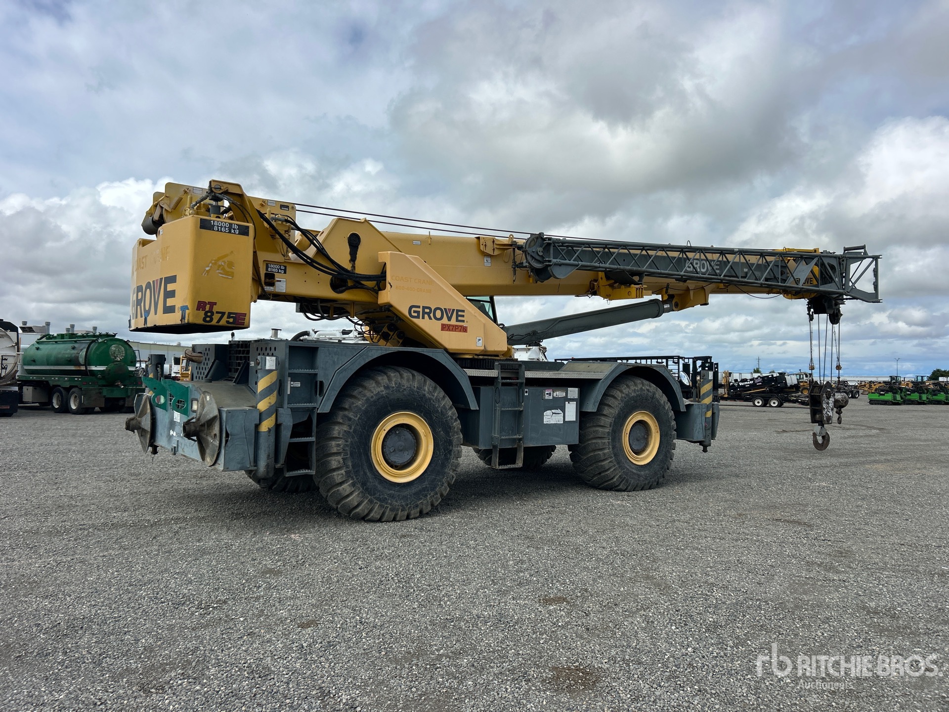 Tilt Cab, Anti Two-Block, Cummins QSB 260 hp 6.7 L Diesel Engine, 41 ft Minimum 128 ft Maximum Boom Length, Rooster Sheave, Bifold Jib, 1275 lb 77 ton Capacity McKissick 4 Sheave Hook Block, 558 lb 12 ton Capacity Overhaul Ball, 18000 lb Counterweight