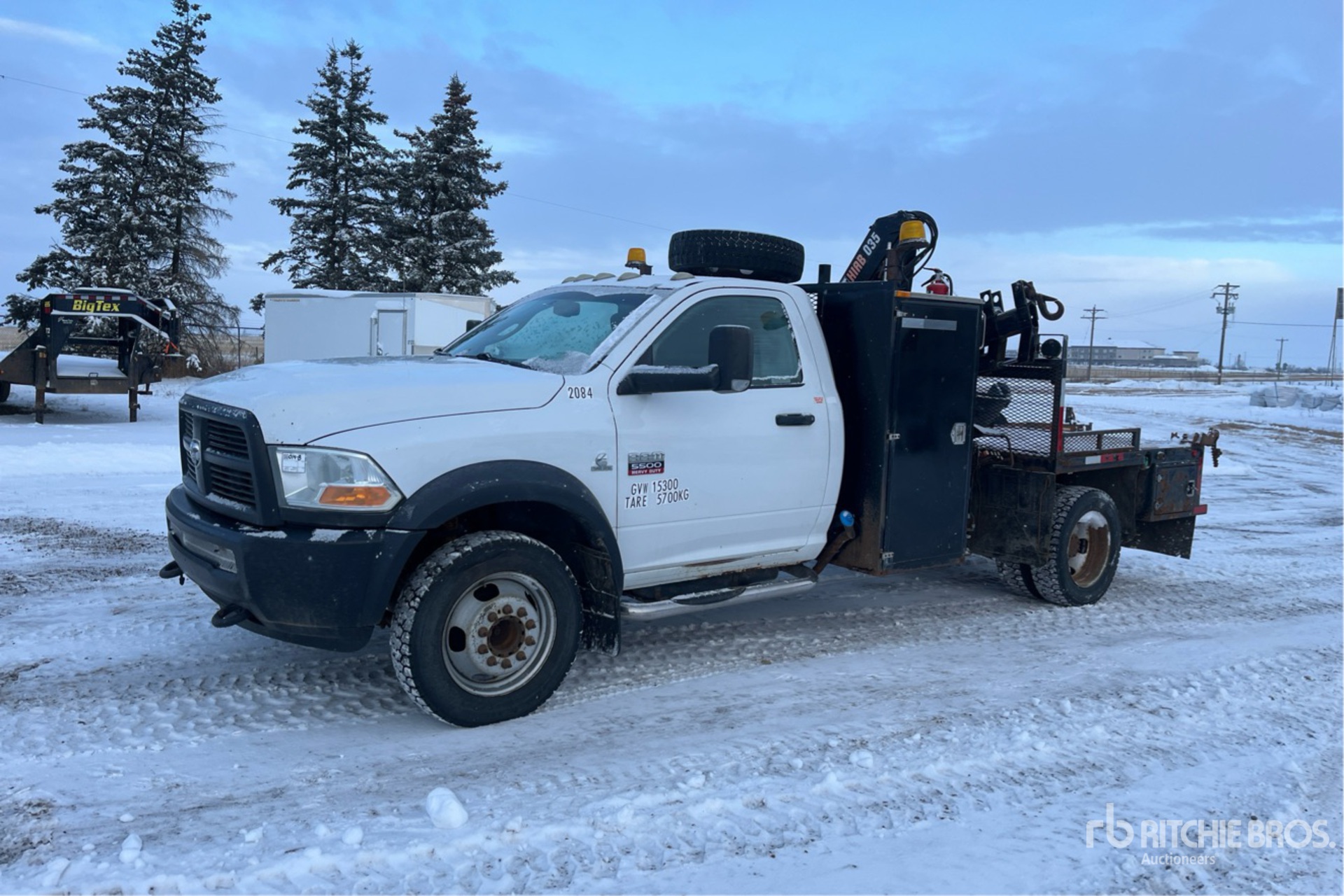 6 Cylinder 6.7 L Diesel Engine, 9872 Engine hrs, Exhaust Brake, Automatic Transmission, 7000 lb Front Axle, 13500 lb Rears, 19500 lb GVWR, 225/70R19.5 Front Tires, 225/70R19.5 Rear Tires, Spring Suspension, 174 in Wheelbase, PTO, 2300 kg Capacity, Center Mounted, 3 Section Boom, Dual Controls, Out and Down Outriggers, 6 ft 4 in x 93 in Bed, 5th Wheel, WE-R-DIVERSE-BRIDGES