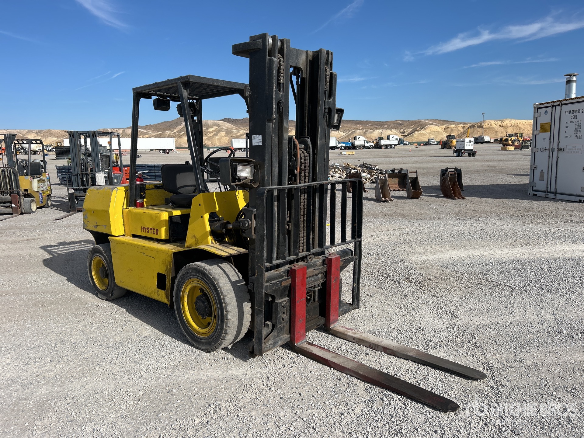 3 Stage Mast, 172 in Max Lift Height, 92 in Lowered Mast Height, 48 in Forks, Side Shift, Solid Pneumatic Tires, Perkins 4 Cylinder Diesel Engine