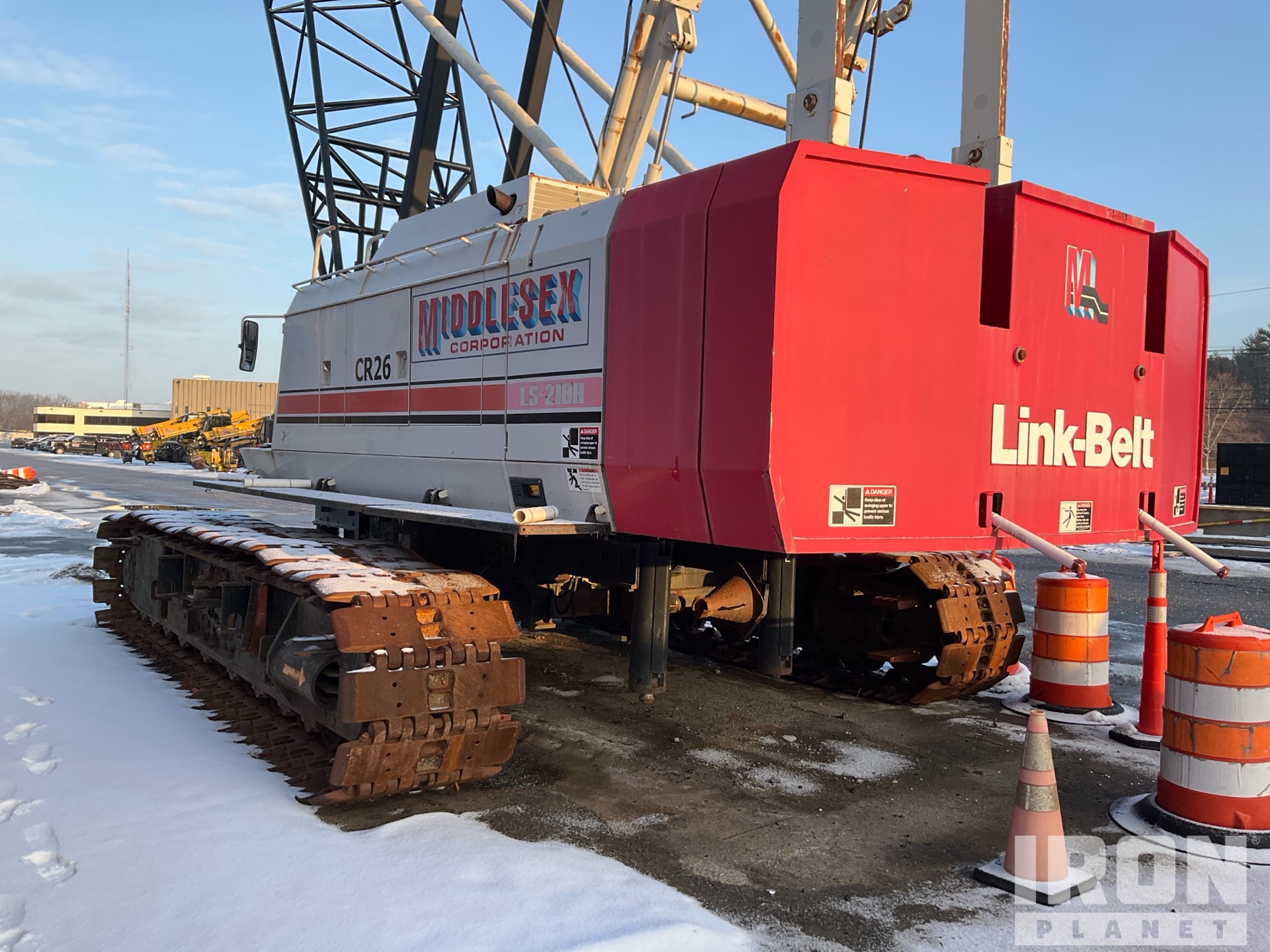 Anti Two-Block, Trimble GS820 Load Moment Indicator, 160 ft Boom, Self Erecting, Auxiliary Hoist, Johnson 2114 lb 4 Sheave 80 ton Hook Block, 753 lb 15 ton Overhaul Ball, 36 in Smooth Track Shoes, Expandable Width Tracks