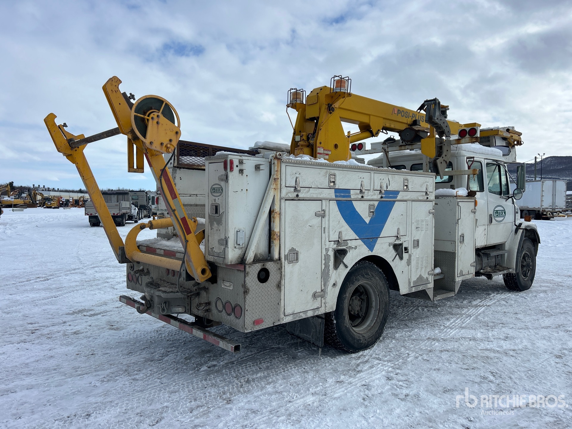 Cummins 6 Cylinder 8.3 L Engine, Automatic Transmission, 12000 lb Front Axle, 23000 lb Rears, 35000 lb GVWR, 11R22.5, Spring Suspension, 200 in Wheelbase, 450 lb Capacity, Center Mounted, Telescopic Boom, Utility Body, Hydraulic Hose Reel, 14 ft 5 in x 102 in Bed, Pintle Hitch