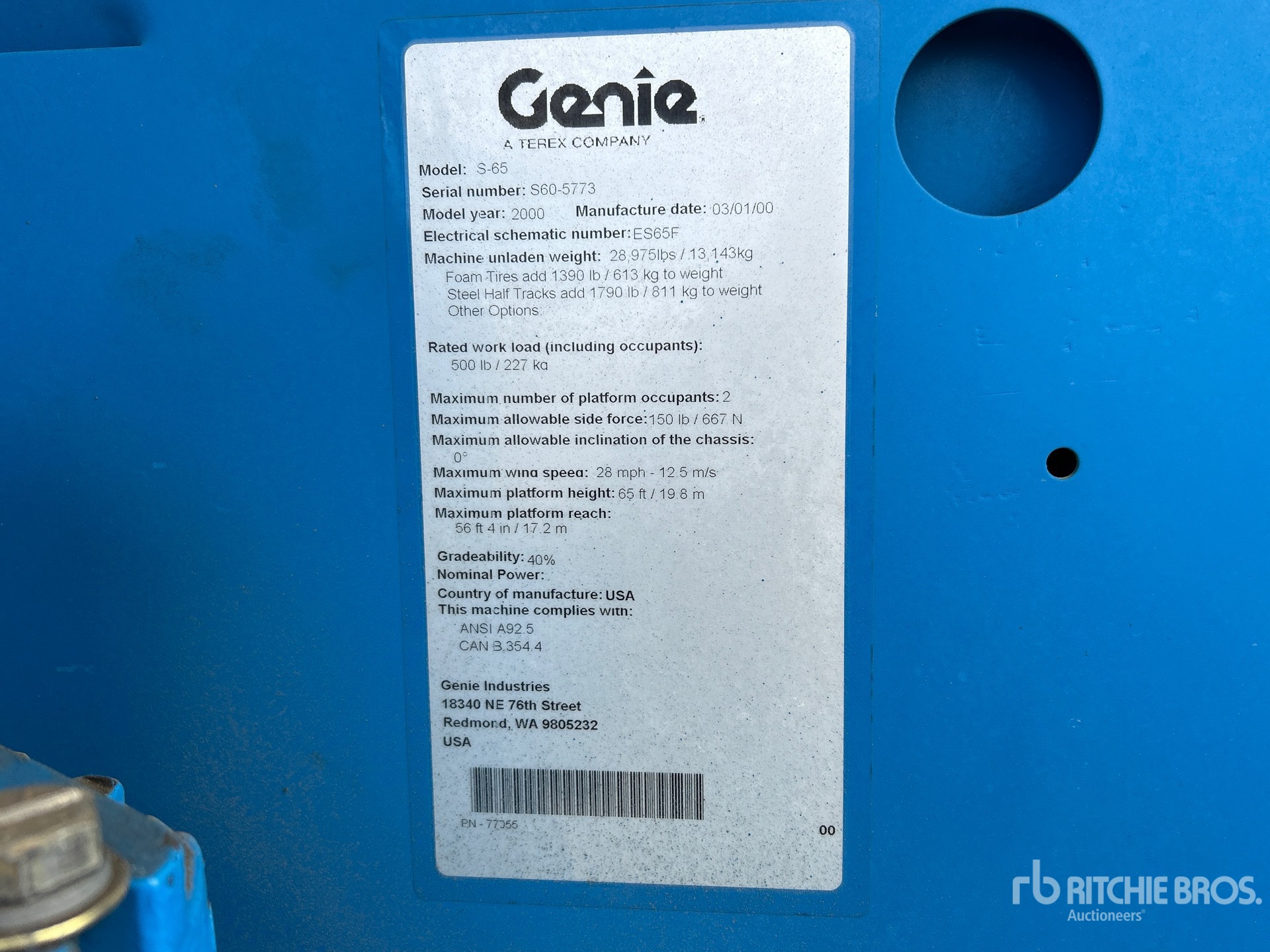 The detailed equipment information is limited in scope, and Ritchie Bros. Auctioneers has not inspected any aspects or components of the equipment other than those expressly set forth herein. Unless expressly stated, we make no representations or warranties, express or implied, concerning the equipment or its components, including without limitation any representations or warranties concerning functionality, conformity or compliance with any safety standard or requirement of any applicable authority or regulatory body, fitness for any particular purpose, or merchantability. You are strongly advised to perform your own detailed inspection of the equipment prior to bidding.