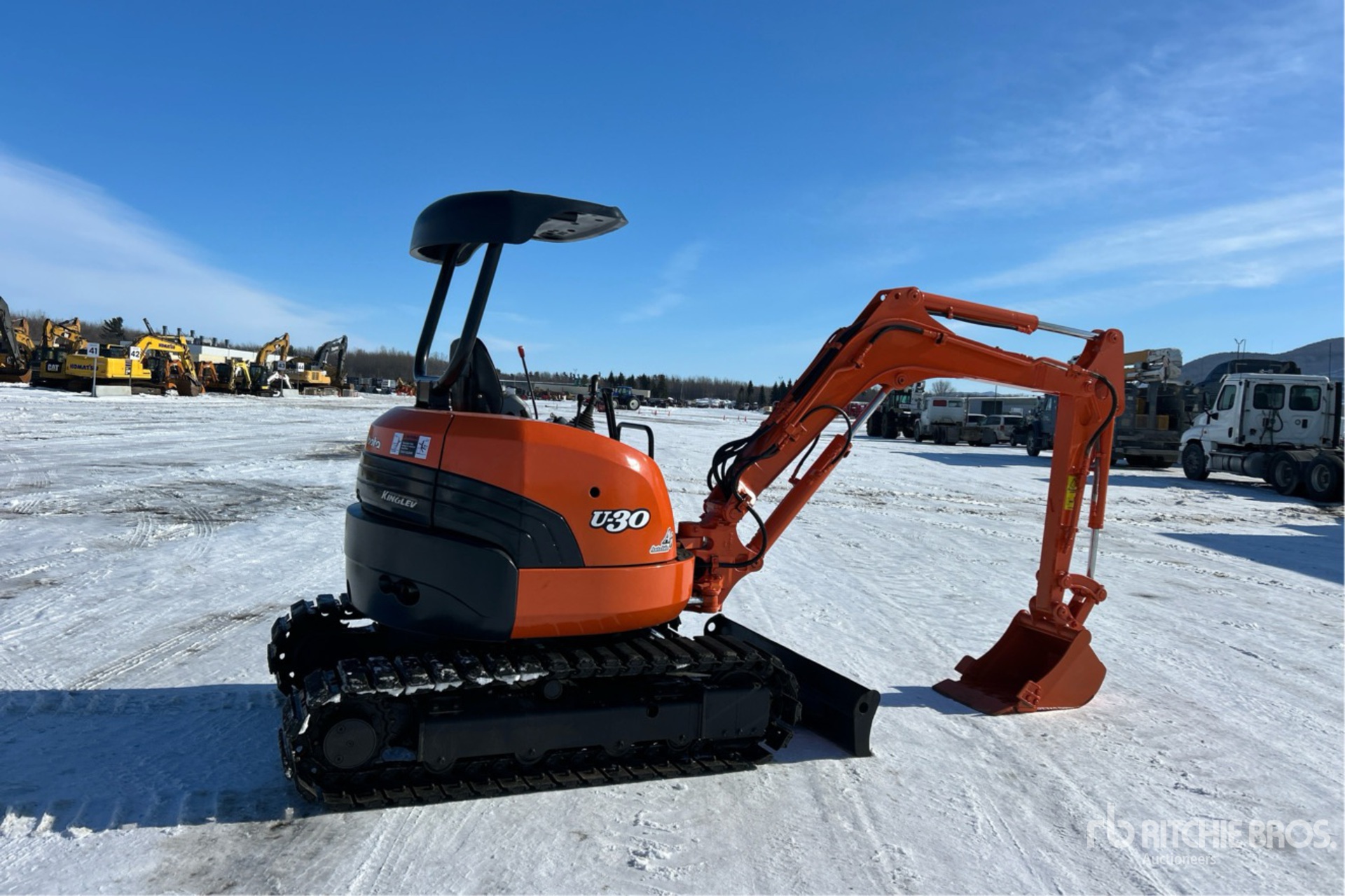 Requires Diesel Exhaust Fluid, Swing Boom, 4 ft Stick, Auxiliary Hydraulic Plumbing, Backfill Blade, 12 in Double Grouser Track Shoes w/Rubber Inserts, 18 in Digging Bucket