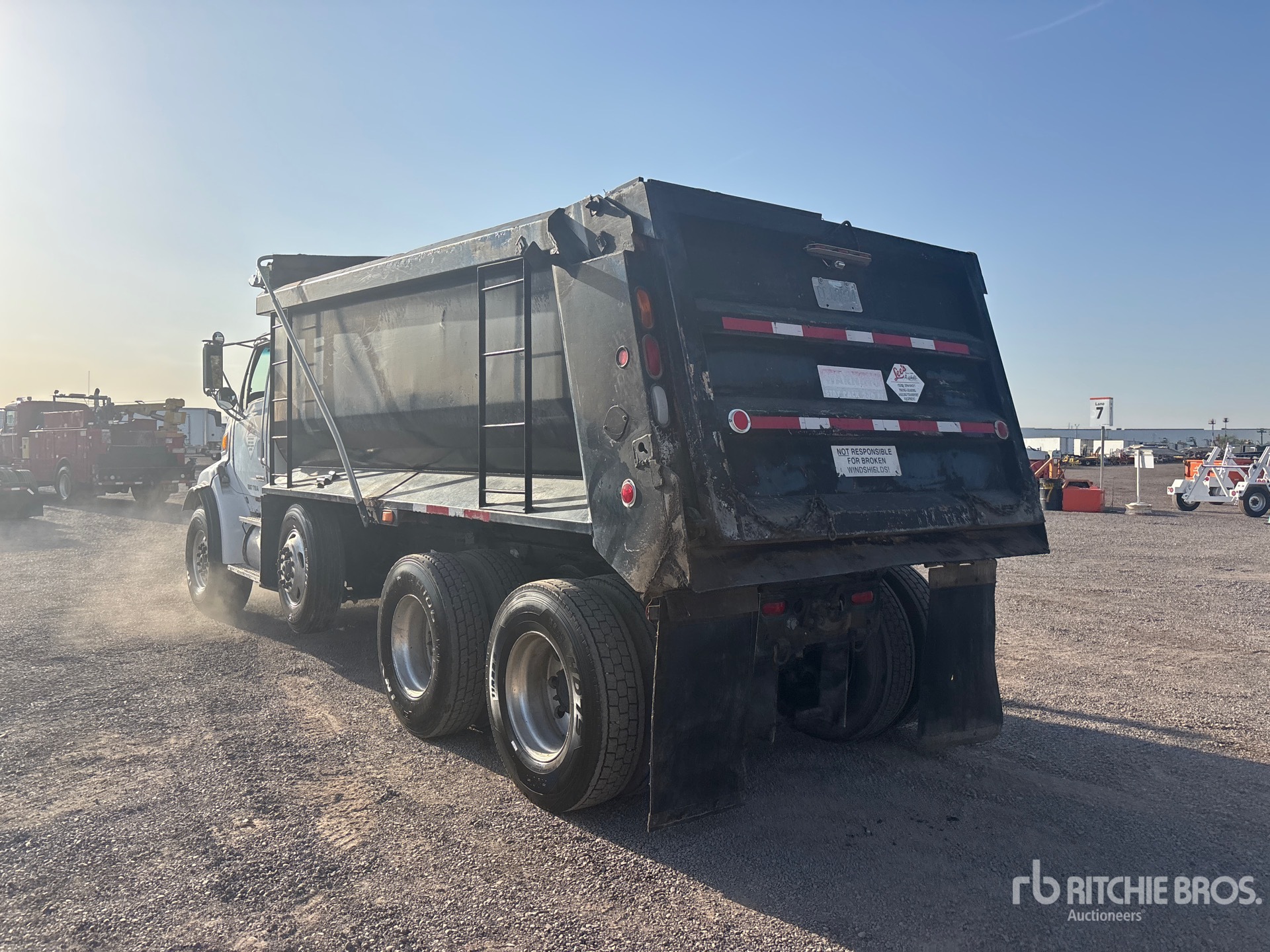 Located in Lane 17 Spot 26, Cat C12 12 L 408 hp Engine, 25425 Engine hrs, Eaton Fuller Manual Transmission, 20000 lb Front Axle, 46000 lb Rears, 66000 lb GVWR, 425/65R22.5 Front Tires, 11R22.5 Rear Tires, Steerable Air Lift Pusher Axle, Spring Suspension, Electric Roll Tarp, Equipment-from-Lees-Asphalt