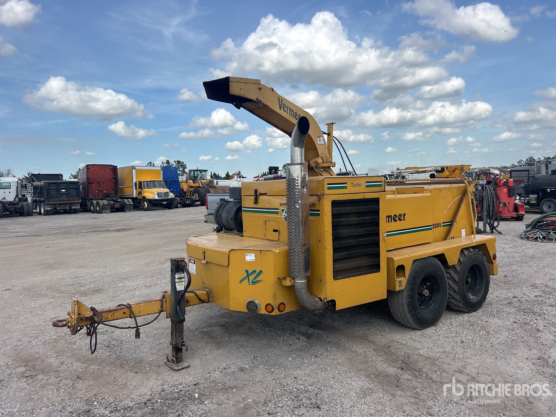 6 Cylinder Diesel Engine, 42 in Feed Opening, Swivel Discharge Chute, Lunette Ring Carrier Trailer
