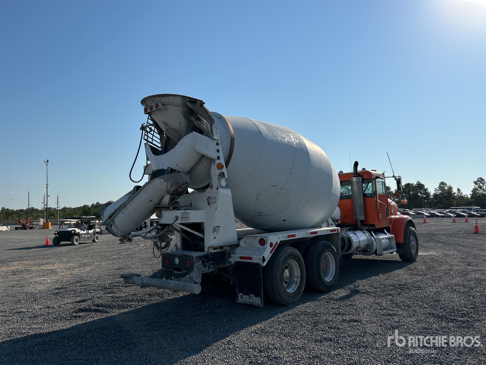 Cummins ISM 6 Cylinder Diesel 330 hp Engine, 2001 US EPA Label, Engine Brake, Eaton Fuller 9LL Manual Transmission, 20000 lb Front Axle, 46000 lb Rears, Meritor RT-46-160 Drive Axles, 5.33:1 Axle Ratio, 66000 lb GVWR, Air Ride Cab, Aluminum Outer Wheels, 425/65R22.5 Front Tires, 11R22.5 Rear Tires, Dual Steering Boxes, Double Frame, Hendrickson Haulmaax Rubber over Walking Beam Suspension, 252 in Wheelbase, PTO, McNeilus 11 cyd Mixer Unit, 3 Removable Chutes, Remote Control w/Cord