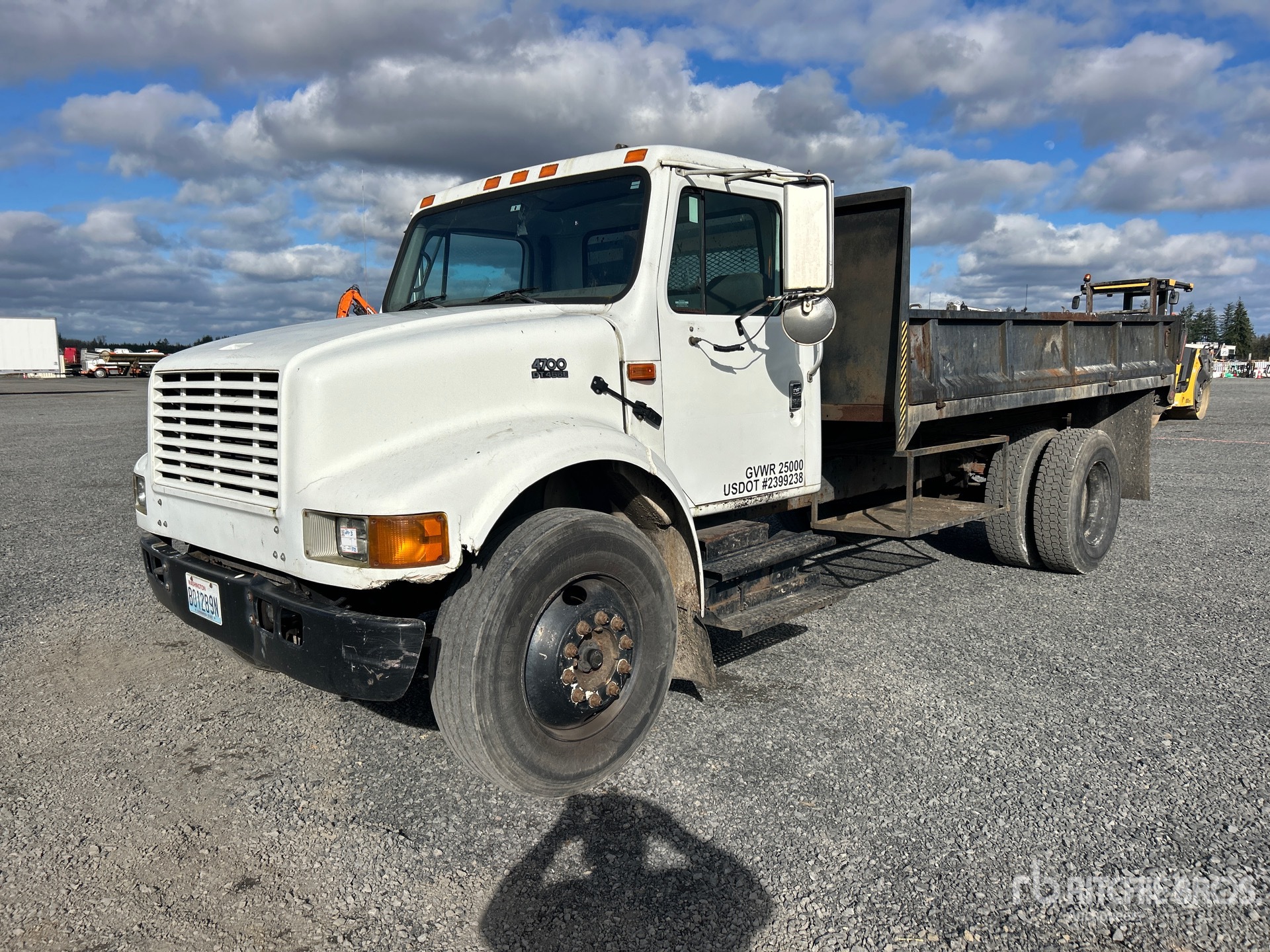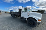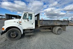 International DT466 6 Cylinder 7.6 L Diesel 195 hp Engine, 2000 US EPA Label, 12011 Engine hrs, Automatic Transmission, 8000 lb Front Axle, 17500 lb Rears, 24999 lb GVWR, 295/75R22.5, Spring Suspension, 186 in Wheelbase, PTO, 14 ft Long x 1 ft 6 in High Steel Body