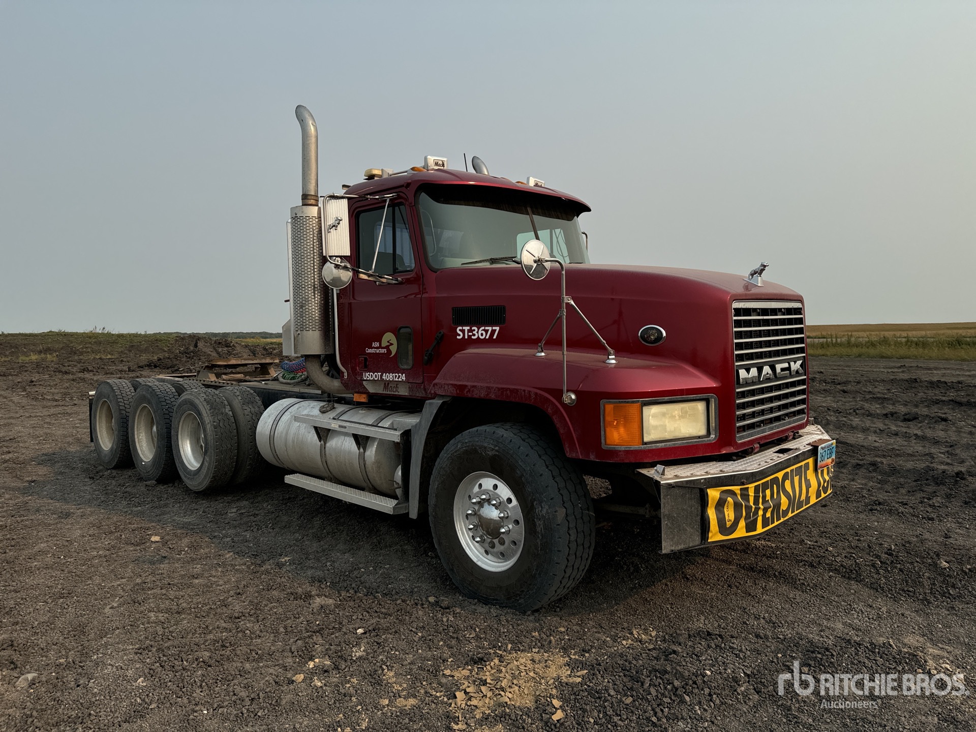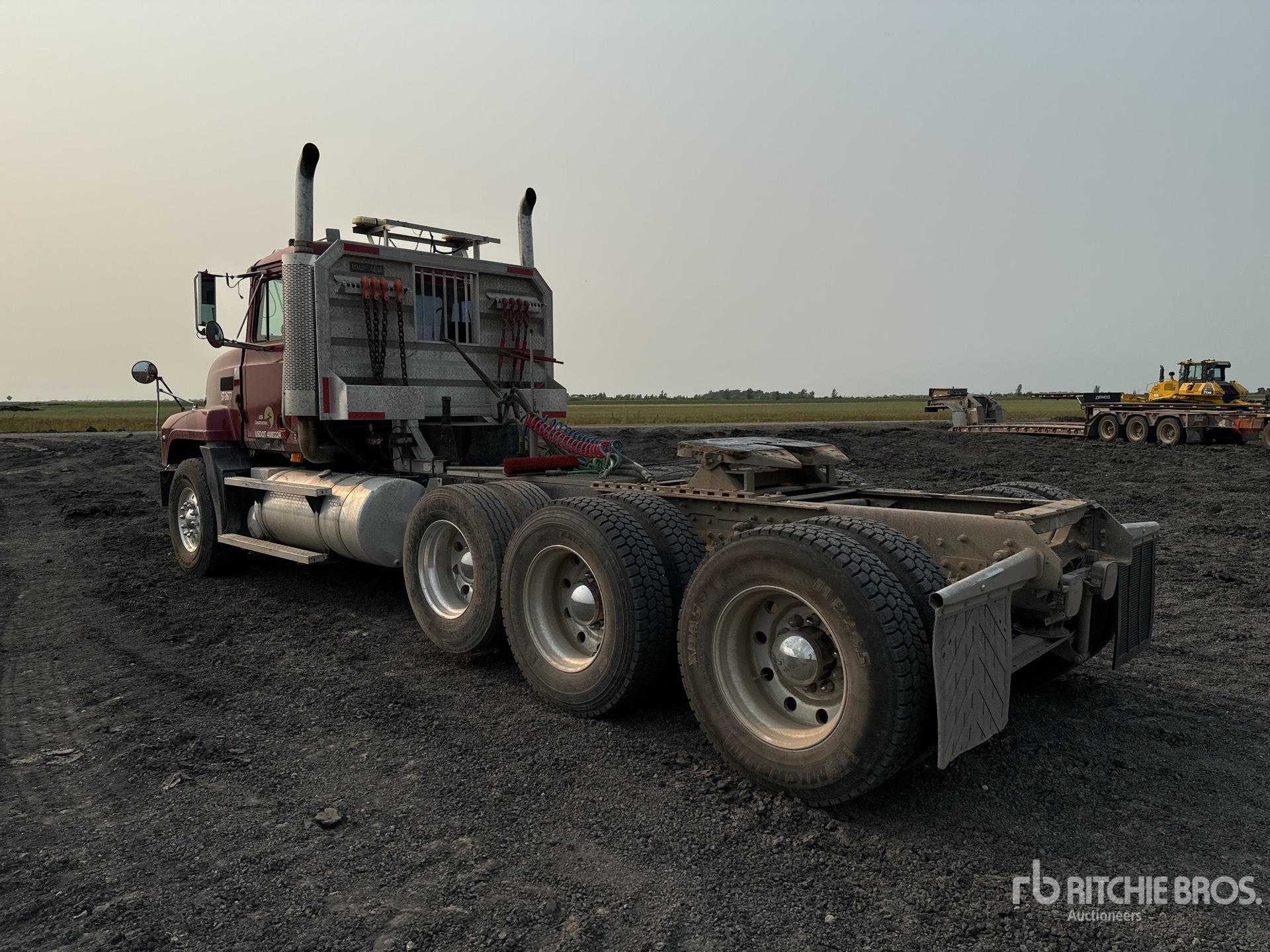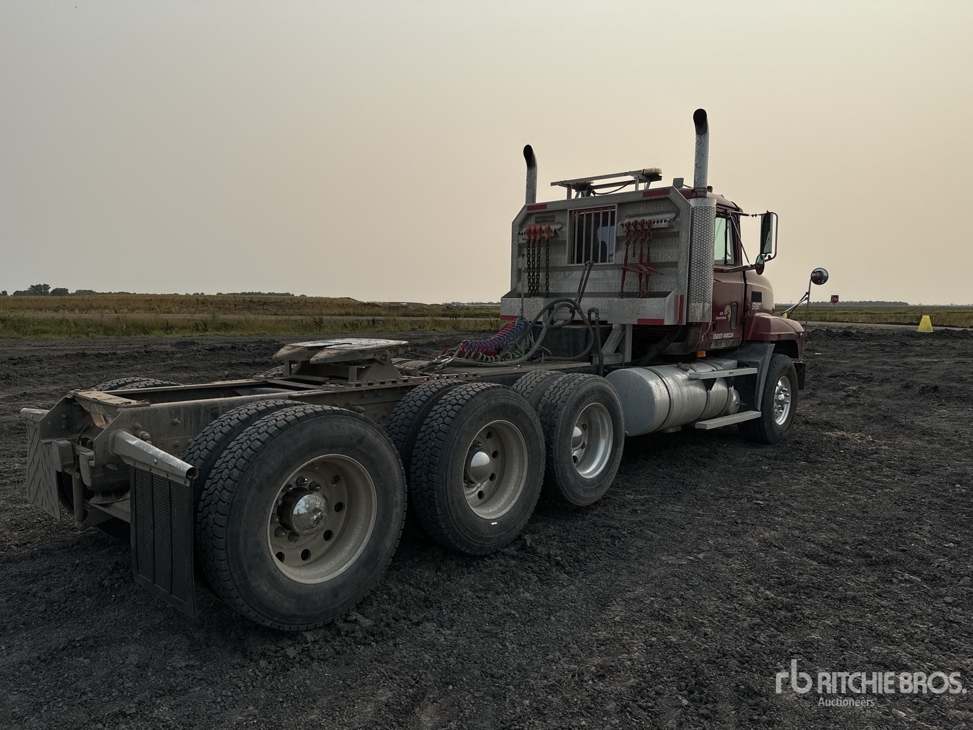 Cummins 6 Cylinder Diesel Engine, 2001 US EPA Label, Engine Brake, Mack T2180 18-Speed Manual Transmission, Dana 19QF4422 Drive Axles, Air Ride Cab, 15538.1 Engine hrs, Aluminum Wheels, 425/65R22.5 Front Tires, 11R24.5 Rear Tires, Air Lift Pusher Axle, Dual Steering Boxes, Double Frame, Air Ride Suspension, 233 in Wheelbase, PTO, Wet Kit, Air Sliding 5th Wheel, Headache Rack, Dual Fuel Tanks