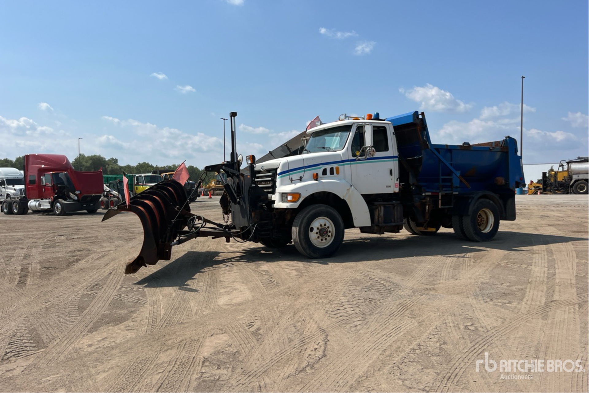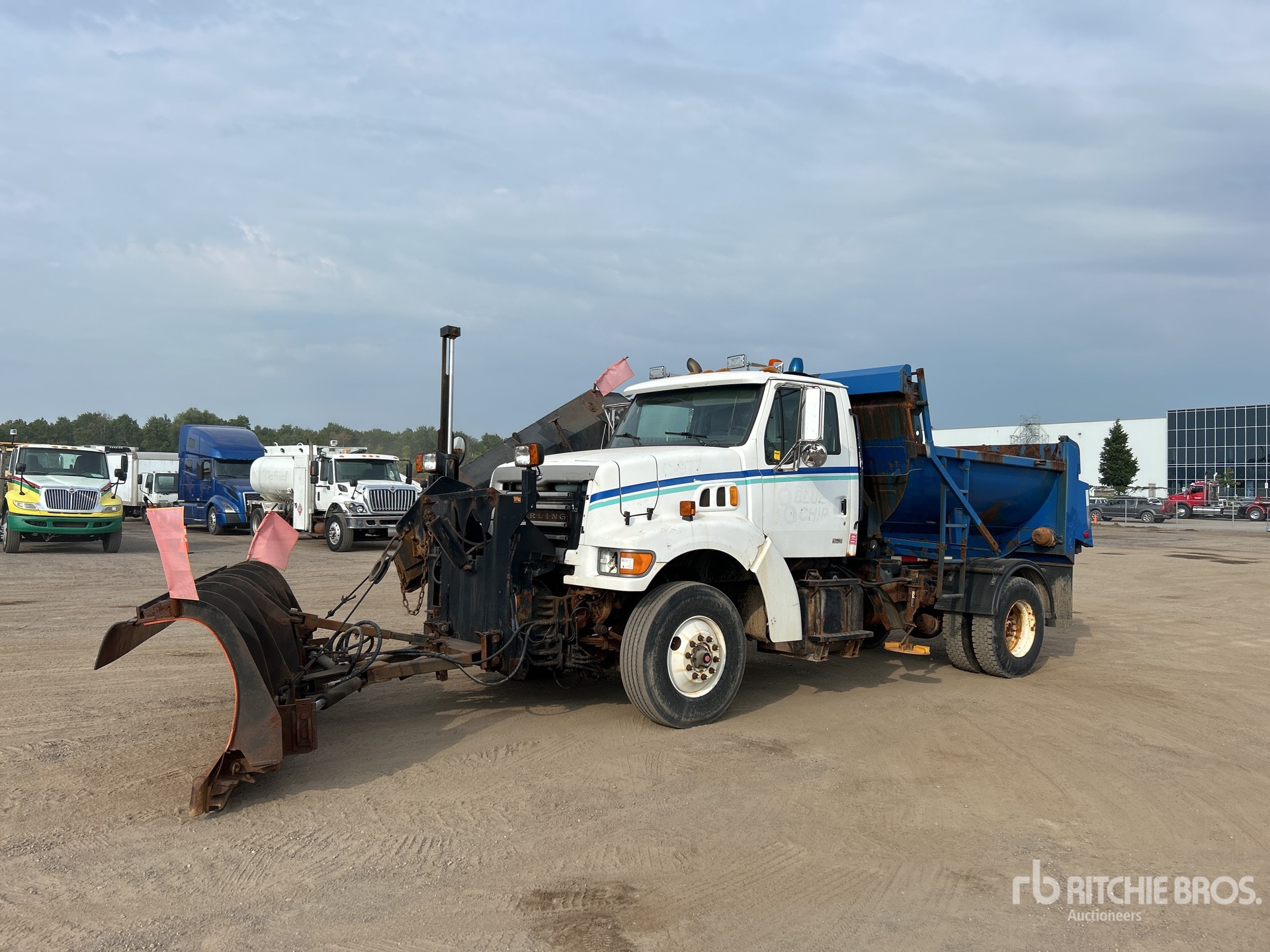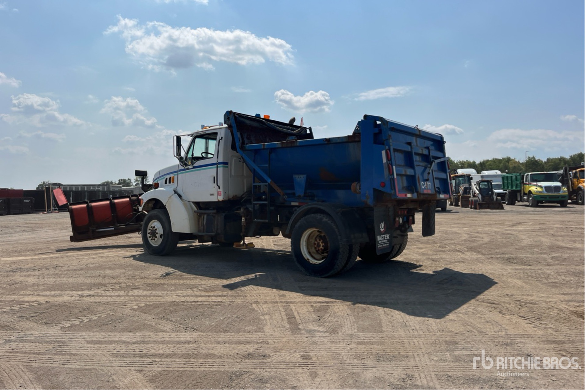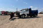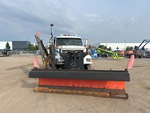 Cat 6 Cylinder 7.2 L Diesel Engine, 6328 Engine hrs, Exhaust Brake, Eaton Fuller Manual Transmission, 16000 lb Front Axle, 23000 lb Rears, 3900 lb GVWR, 315/80R22.5 Front Tires, 11R22.5 Rear Tires, Spring Suspension, 178 in Wheelbase, PTO, 11 ft 1-Way Plow, 12 ft Snow Wing, Steel Spreader, 1 Spinners, In-Cab Controls, 9 ft 3 in Long x 3 ft High Steel Body, Round Bottom, Manual Roll Tarp, Tailgate Chute, Pintle Hitch