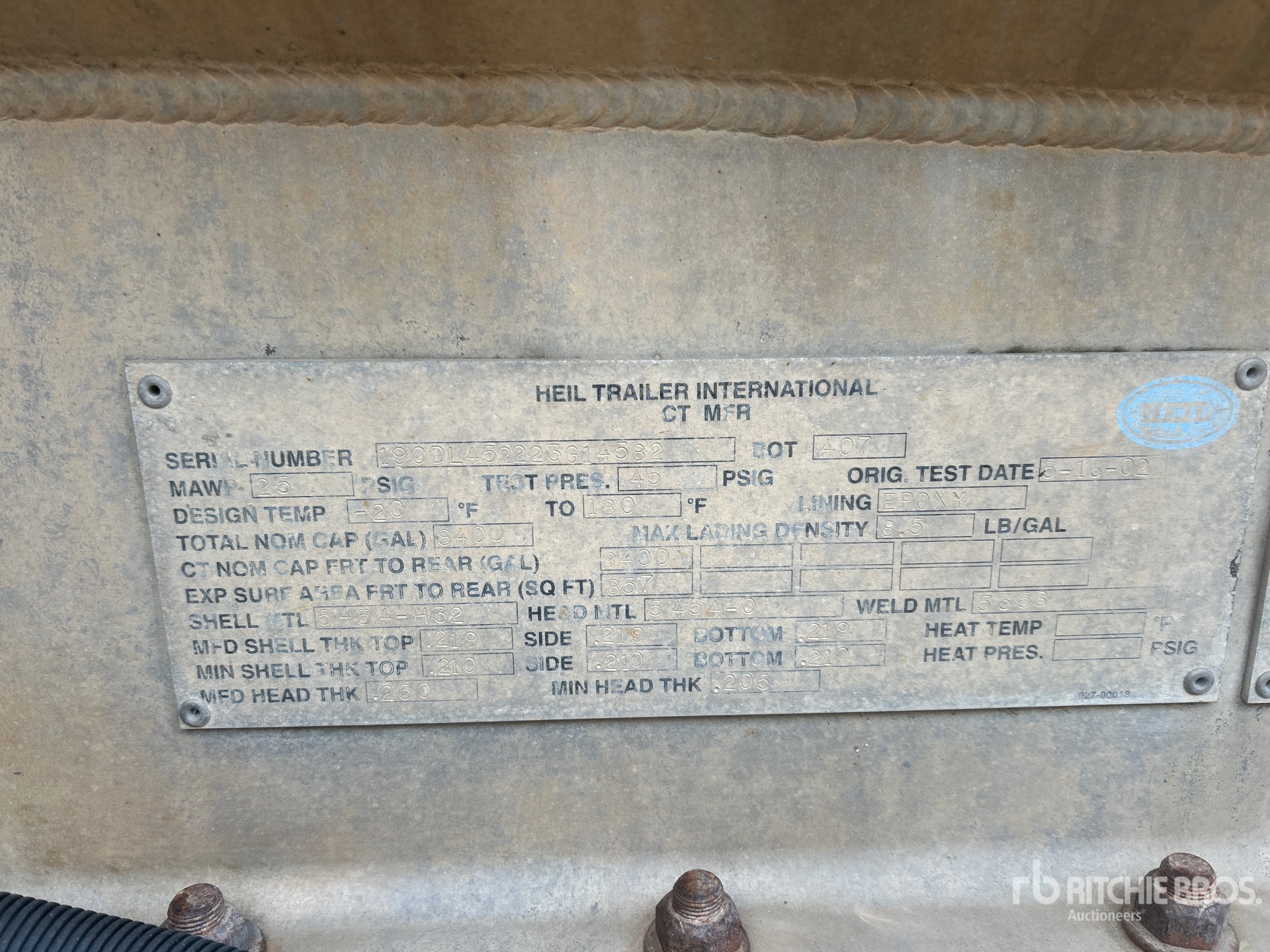 2002 Heil 8400 gal T/A Tanker Trailer