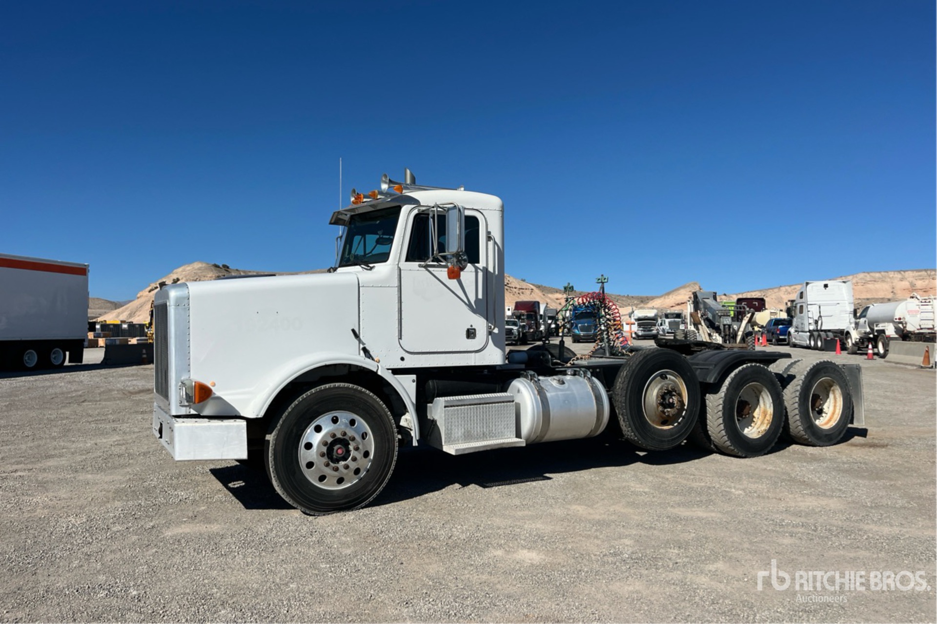 Cat Engine, 1806 Engine hrs, Eaton Fuller 13-Speed Manual Transmission, 12000 lb Front Axle, 40000 lb Rears, 54000 lb GVWR, Engine Brake, 228 in Wheelbase, Air Suspension, Air Lift Pusher Axle, Aluminum Front Wheels, 11R24.5, Air Sliding 5th Wheel