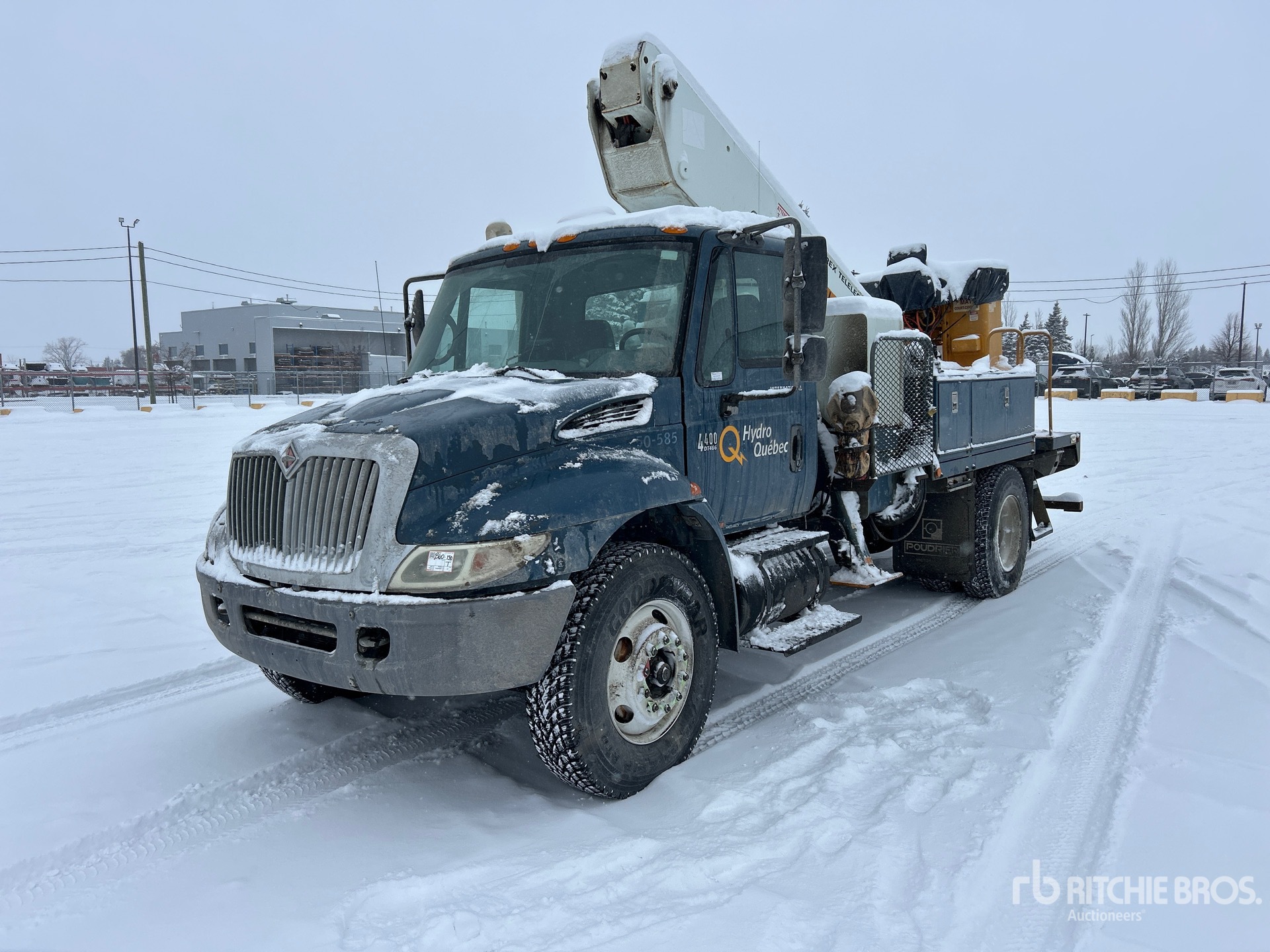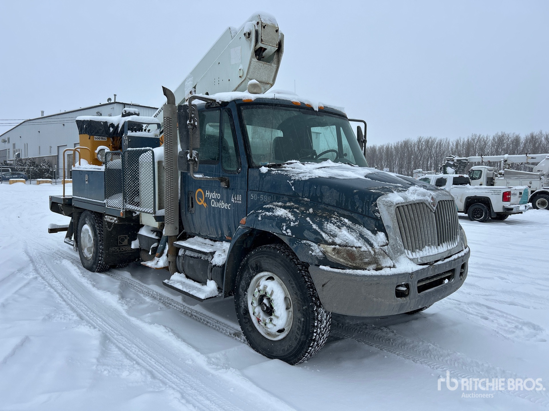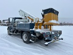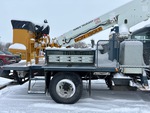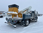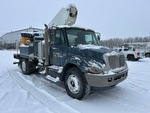 International DT466 6 Cylinder 7.6 L Diesel 250 hp Engine, 2002 US EPA Label, 2060 Engine hrs, Allison Automatic Transmission, Differential Lock, 14000 lb Front Axle, 23000 lb Rears, 16783 kg GVWR, 11R22.5, Spring Suspension, 187 in Wheelbase, 500 lb Capacity, Front Mounted, Two-Person Telescopic Boom, A-Outriggers, 12 ft x 96 in Bed, Pintle Hitch