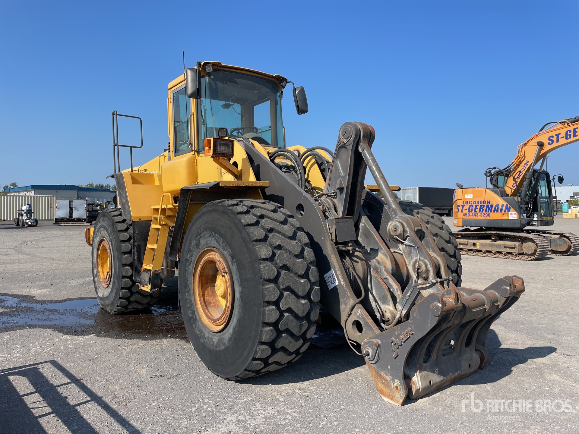 Enclosed Cab, Ride Control, 2002 US EPA Label, Auxiliary Hydraulics, Hydraulic Coupler, Auto Lube, 26.5-25 Tires