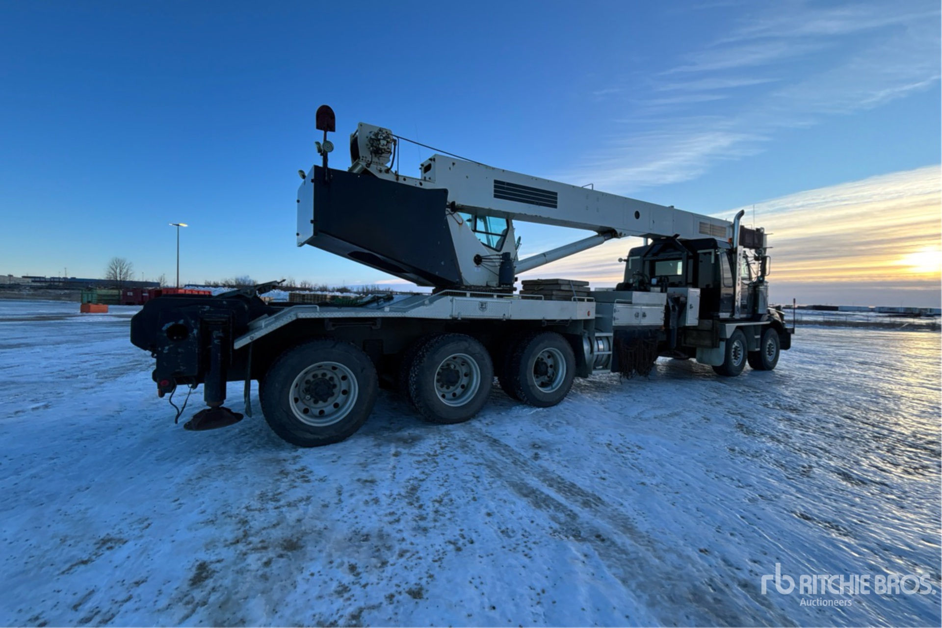 Cat C15 6 Cylinder 14.6 L Diesel 475 hp Engine, Engine Brake, Eaton Fuller RTLO-18918B 18-Speed Manual Transmission, Triple Differential Locks, 36000 lb Front Axle, 57000 lb Rears, Meritor RZ-166 Drive Axles, 4.56:1 Axle Ratio, 93000 lb GVWR, 36 in Flat Top Sleeper Cab, Aluminum Wheels, 425/65R22.5 Front Tires, 11R24.5 Rear Tires, Double Frame, Neway Air Ride Suspension, 361 in Wheelbase, PTO, 31 ft - 103 ft 4 Section Boom, Johnson 2 Sheave Hook Block, Enclosed Cab w/ Air Conditioner, Wireless Anti-Two Block, Out and Down Outriggers, Rear Outriggers, 5th Wheel, Boom s/n 35100