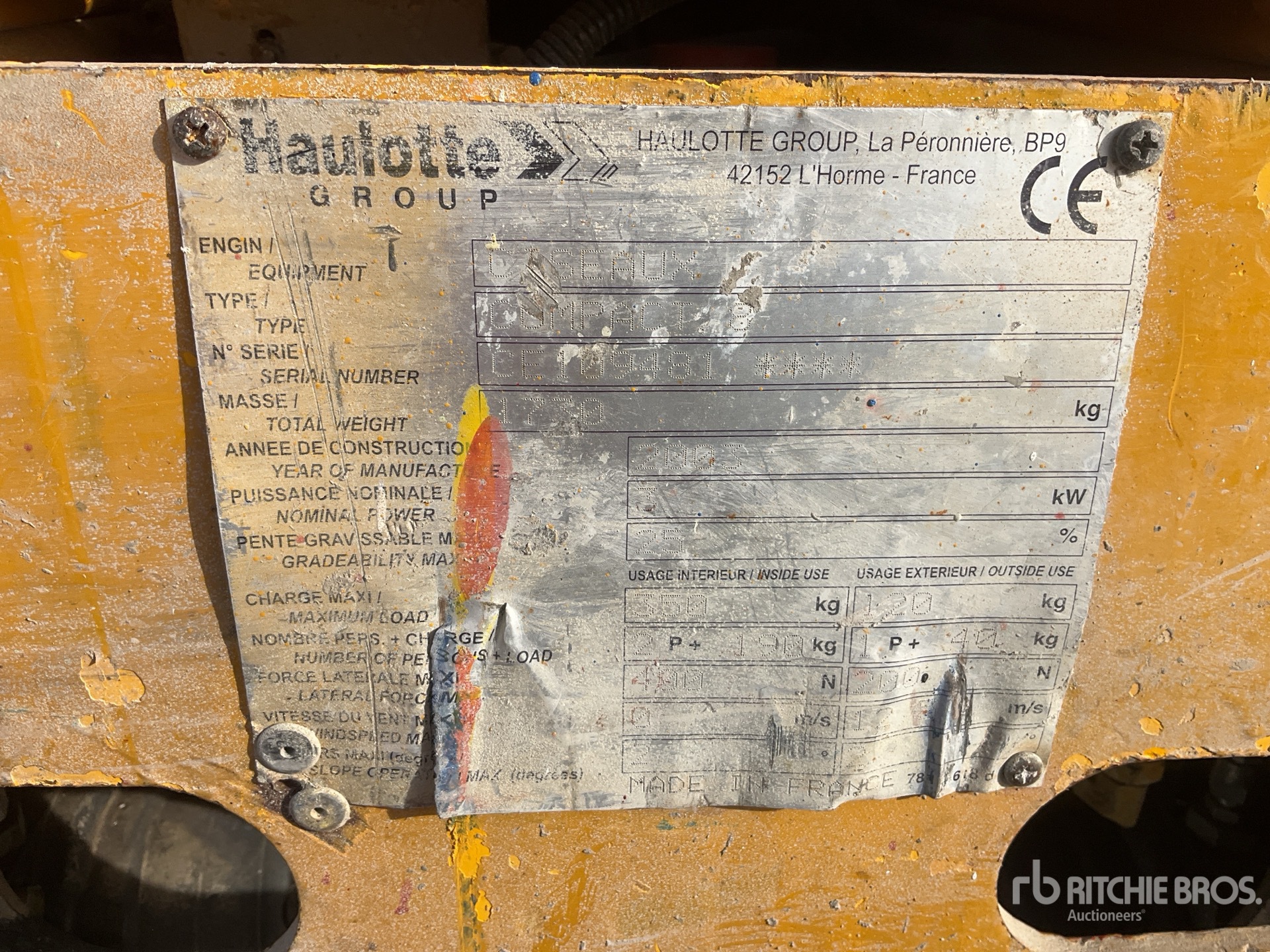 The detailed equipment information is limited in scope, and Ritchie Bros. Auctioneers has not inspected any aspects or components of the equipment other than those expressly set forth herein. Unless expressly stated, we make no representations or warranties, express or implied, concerning the equipment or its components, including without limitation any representations or warranties concerning functionality, conformity or compliance with any safety standard or requirement of any applicable authority or regulatory body, fitness for any particular purpose, or merchantability. You are strongly advised to perform your own detailed inspection of the equipment prior to bidding.
