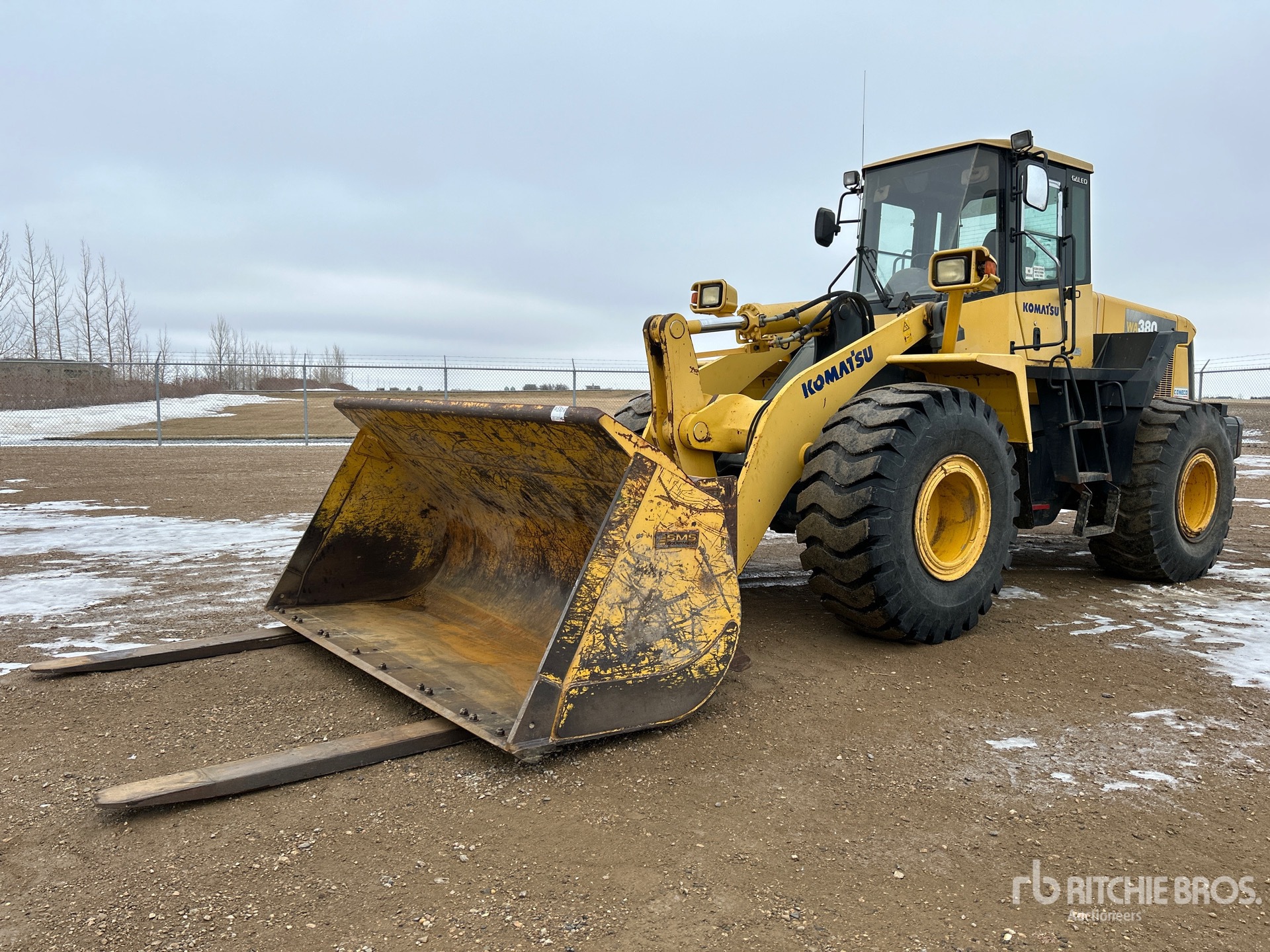 Enclosed Cab, Air Conditioner, Ride Control, Autoshift, Tier 2, 2003 US EPA Label, CARB Compliant, Hydraulic Coupler, 114 in Bucket, Forks, 23.5R25 Tires, 102 in Forks