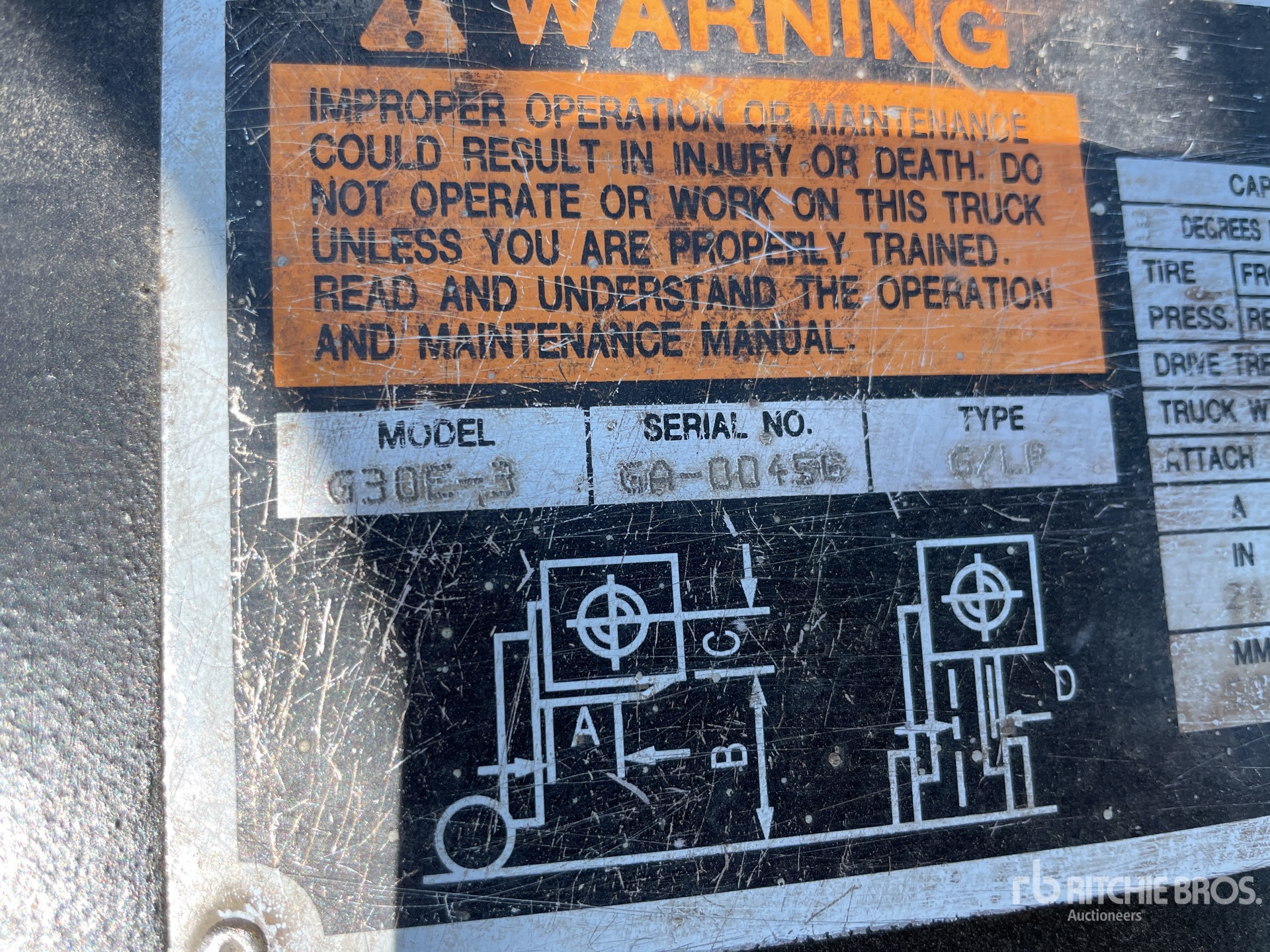 The detailed equipment information is limited in scope, and Ritchie Bros. Auctioneers has not inspected any aspects or components of the equipment other than those expressly set forth herein. Unless expressly stated, we make no representations or warranties, express or implied, concerning the equipment or its components, including without limitation any representations or warranties concerning functionality, conformity or compliance with any safety standard or requirement of any applicable authority or regulatory body, fitness for any particular purpose, or merchantability. You are strongly advised to perform your own detailed inspection of the equipment prior to bidding.