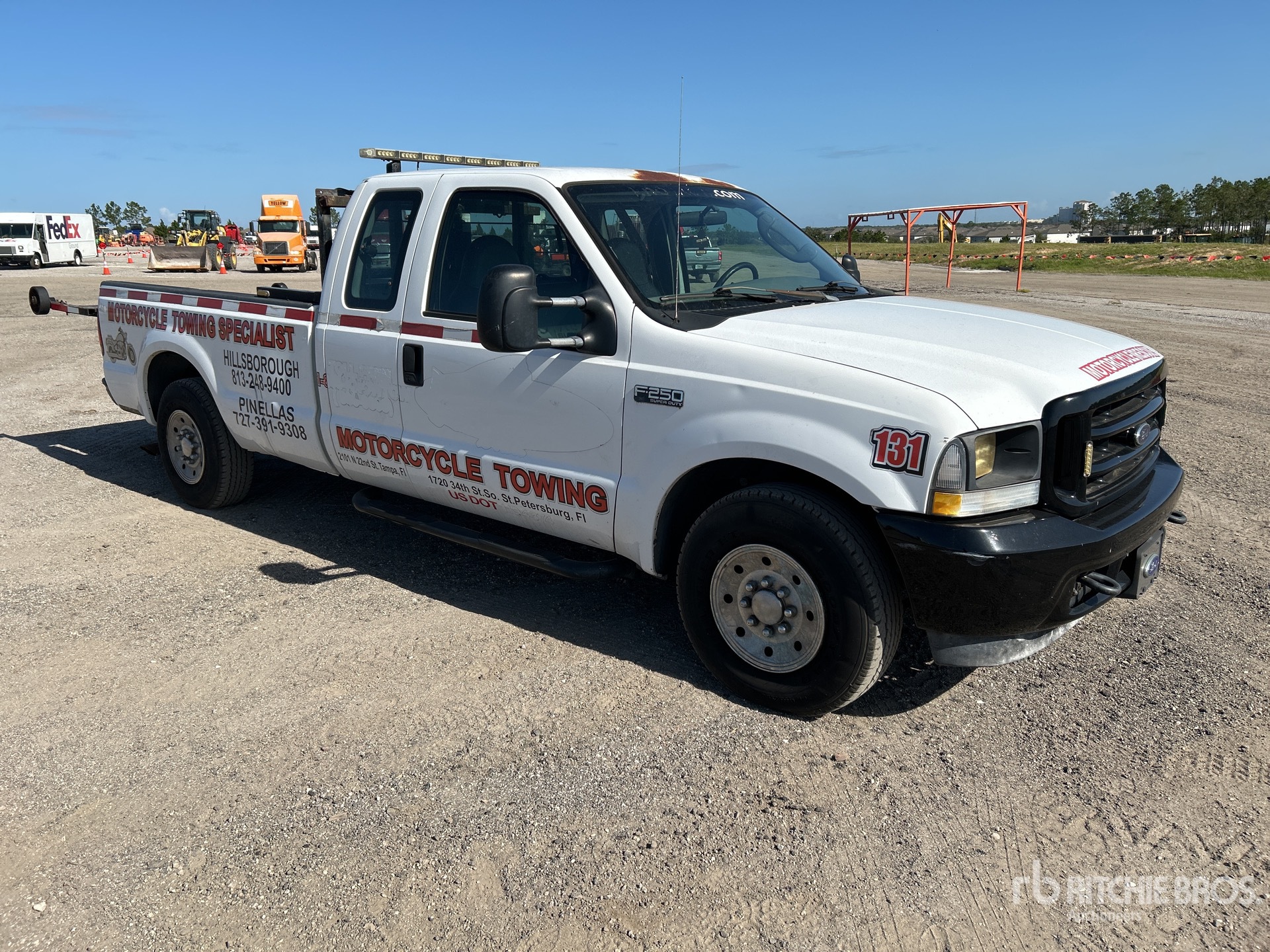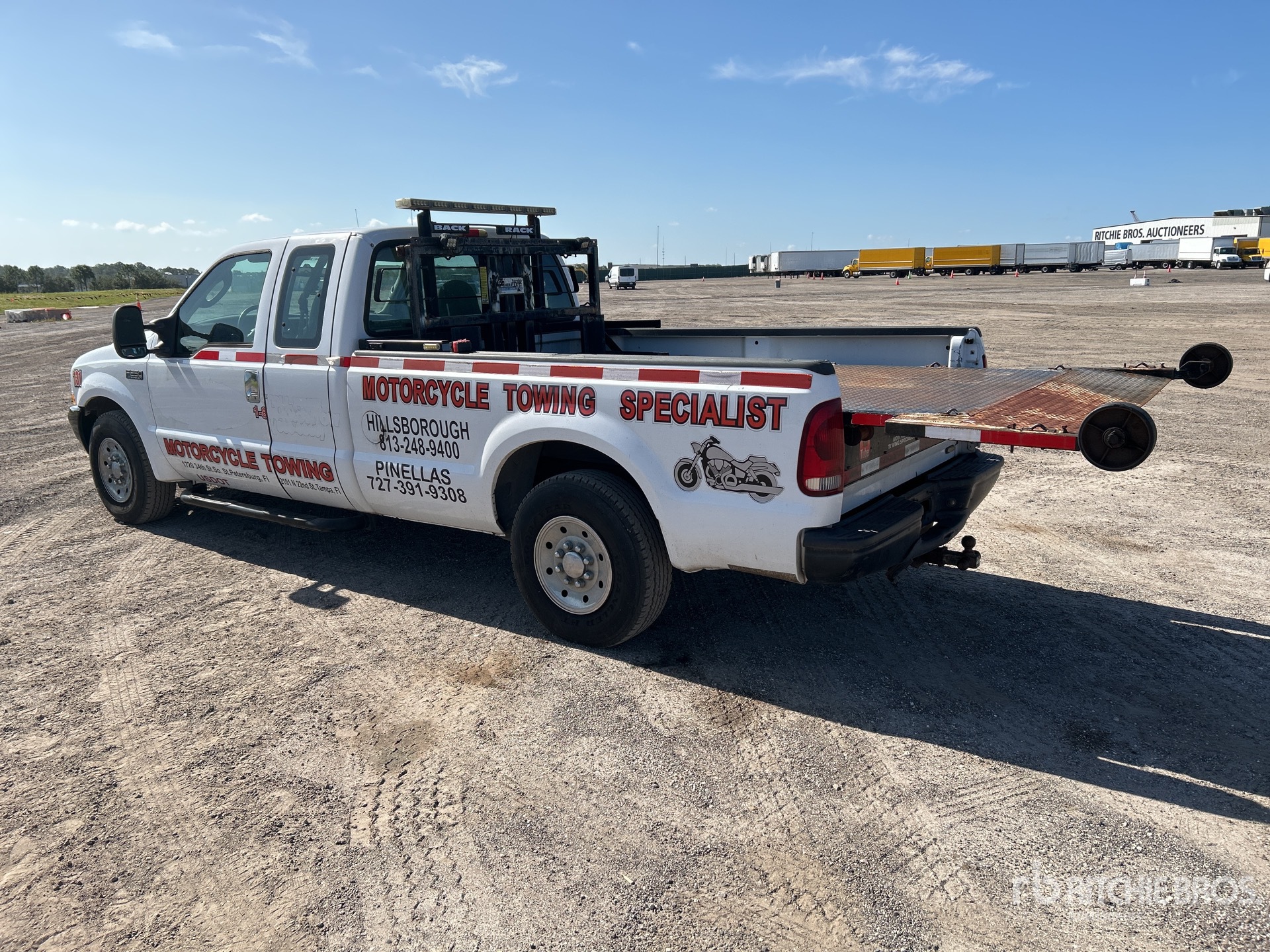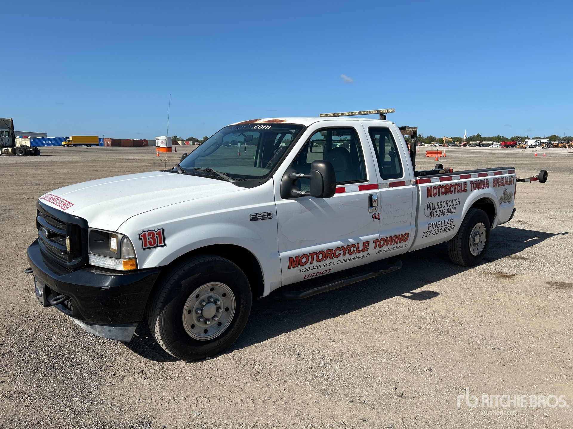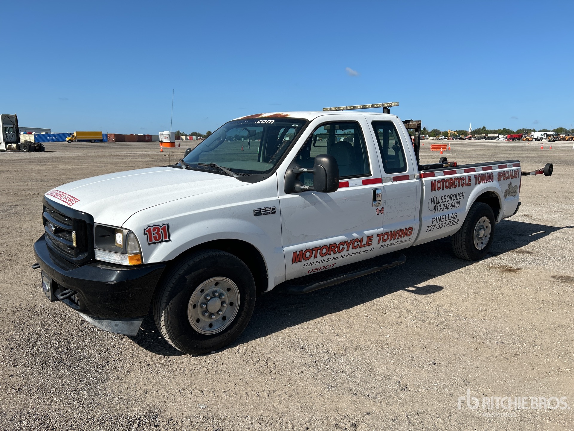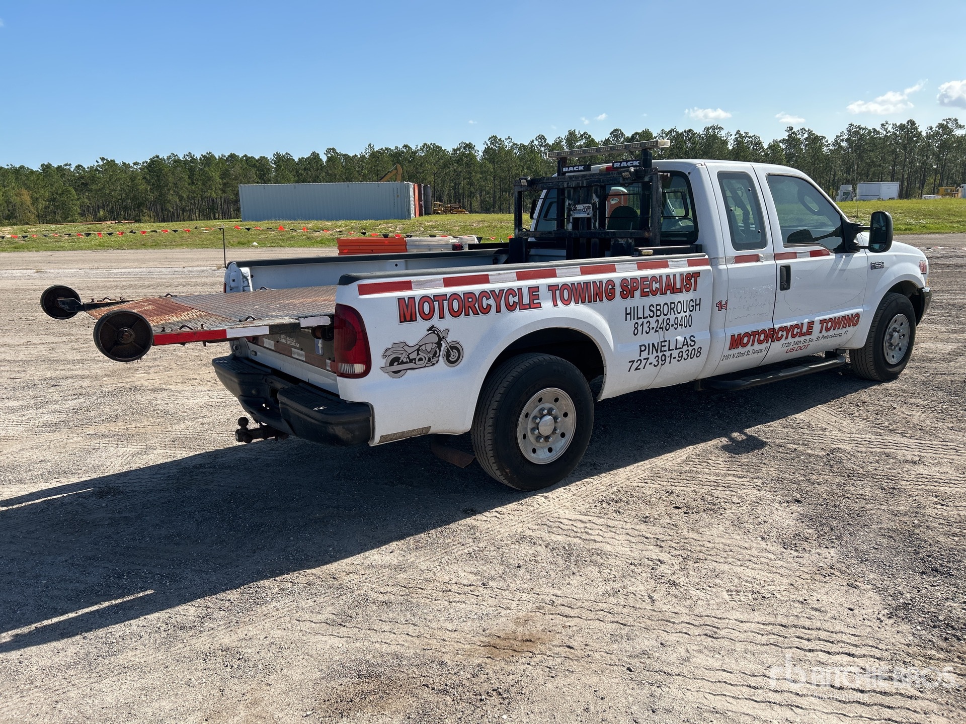 Ford V8 5.4 L Gasoline Engine, 2003 US EPA Label, Automatic Transmission, 3950 lb Front Axle, 6084 lb Rears, 8800 lb GVWR, 235/85R16, Spring Suspension, 158 in Wheelbase, Amerideck Rollback Body, 10 ft x 64 in Bed, Ball, Corded Remote