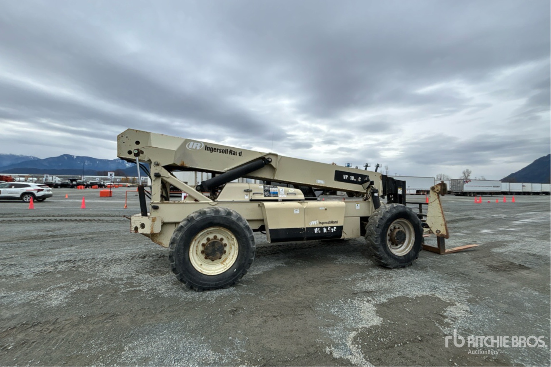 Enclosed Cab, 57 ft Max Lift Height, 10000 lb Max Lift Capacity, 2004 US EPA Label, CARB Compliant, 48 in Forks, Outriggers, Frame Leveling, 13.00-24 Tires