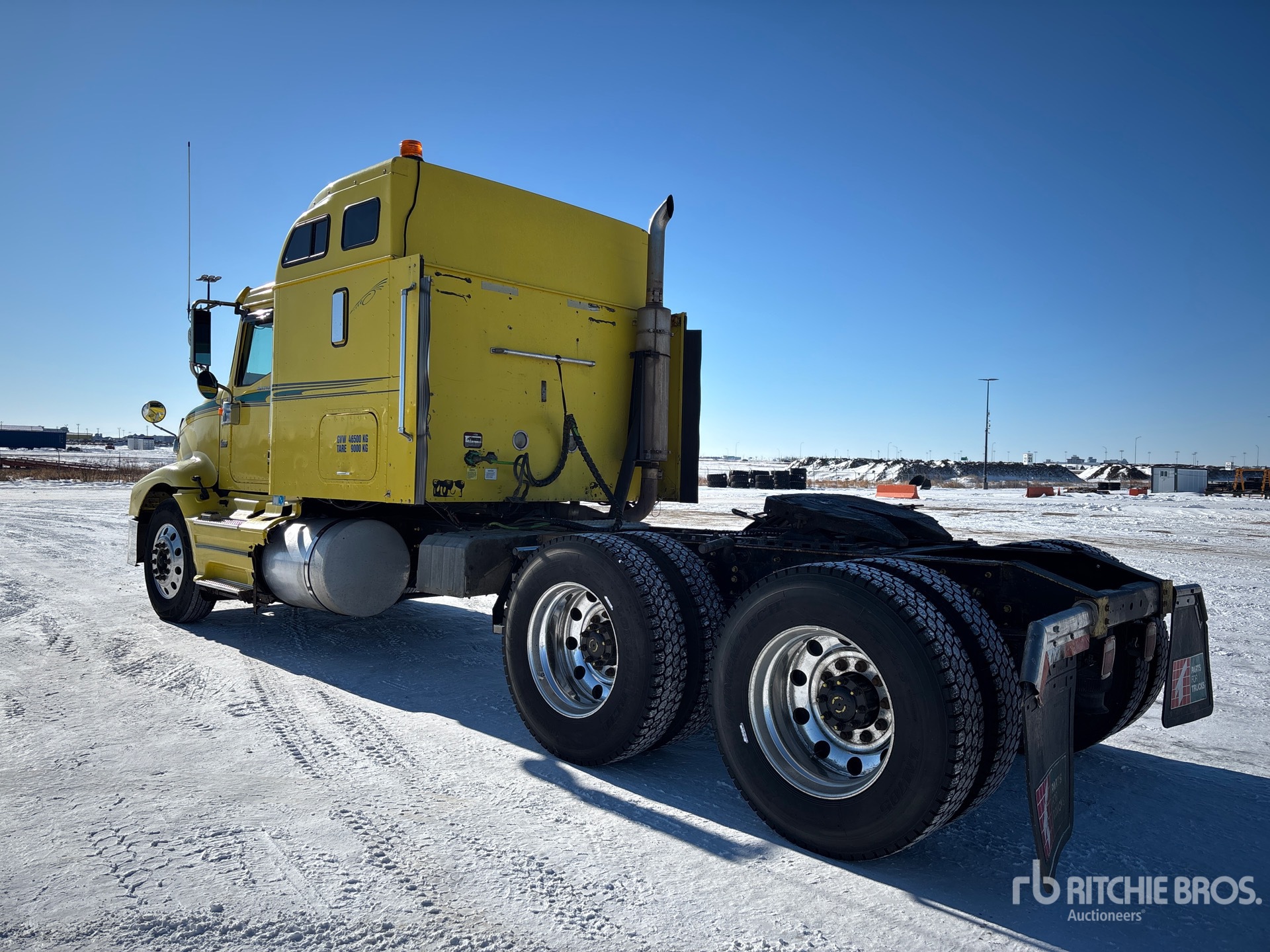 Located in Lane 33 Spot 40, Cummins ISX500 500 hp Engine, 2005 US EPA Label, 3231 Engine hrs, Eaton Fuller 13-Speed Manual Transmission, 12000 lb Front Axle, 40000 lb Rears, 52000 lb GVWR, Engine Brake, Differential Lock, 56 in Mid Roof Sleeper Cab, 234 in Wheelbase, Air Suspension, Aluminum Wheels, 11R24.5, Air Sliding 5th Wheel, Dual Fuel Tanks