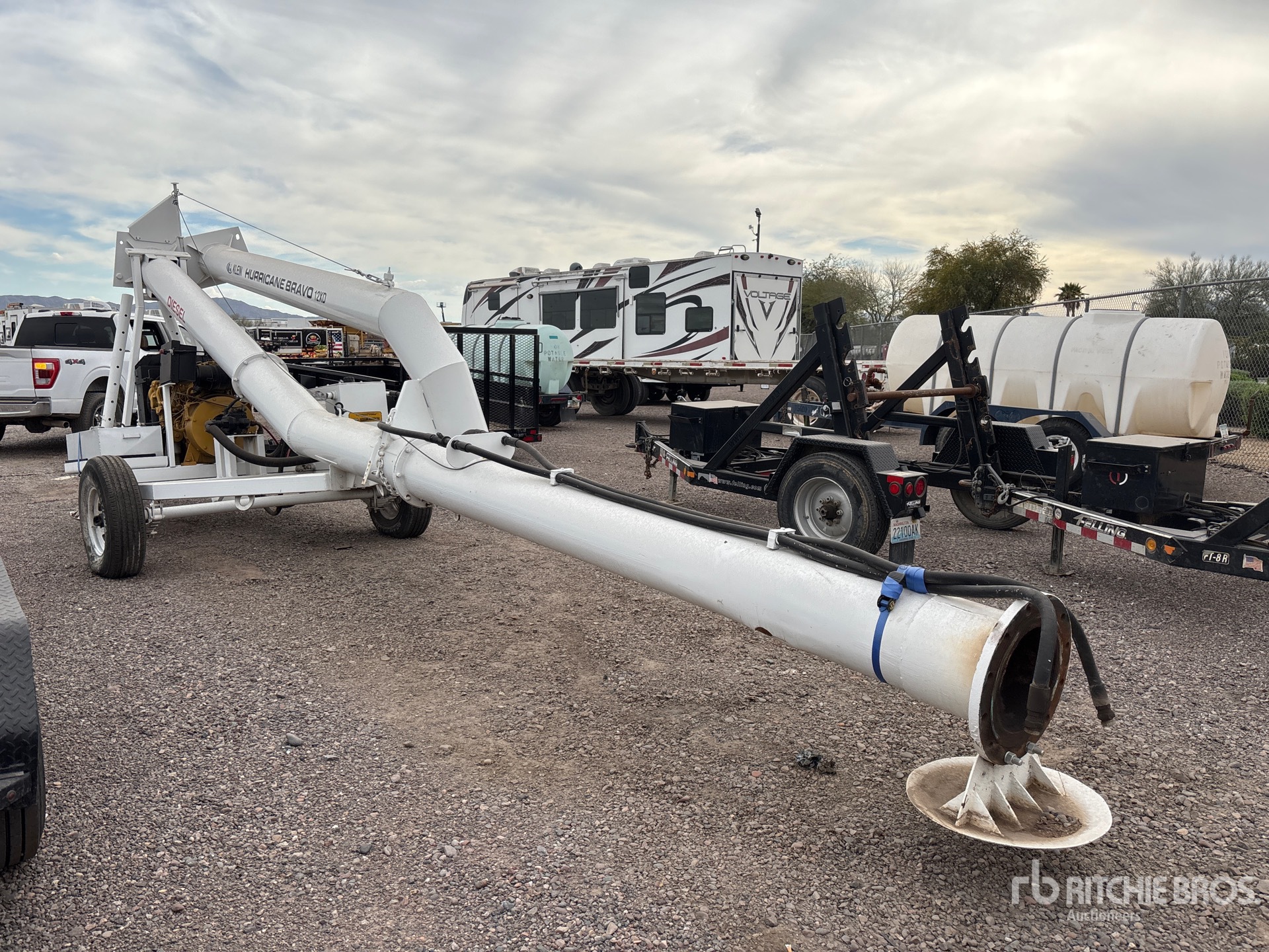 12 in Intake, 12 in Discharge, Cat Diesel Engine, Lunette Ring Carrier Trailer, Electric Brakes