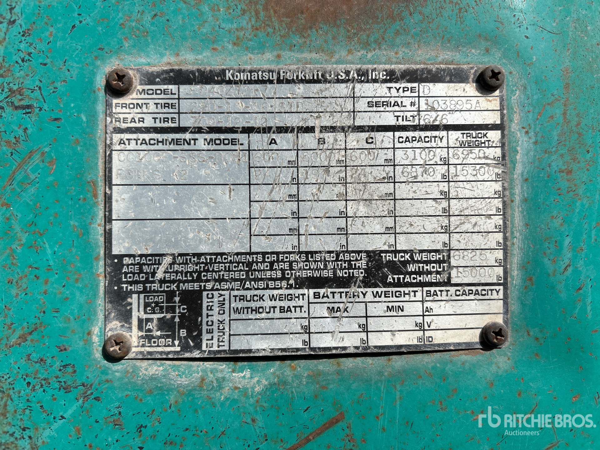 The detailed equipment information is limited in scope, and Ritchie Bros. Auctioneers has not inspected any aspects or components of the equipment other than those expressly set forth herein. Unless expressly stated, we make no representations or warranties, express or implied, concerning the equipment or its components, including without limitation any representations or warranties concerning functionality, conformity or compliance with any safety standard or requirement of any applicable authority or regulatory body, fitness for any particular purpose, or merchantability. You are strongly advised to perform your own detailed inspection of the equipment prior to bidding.