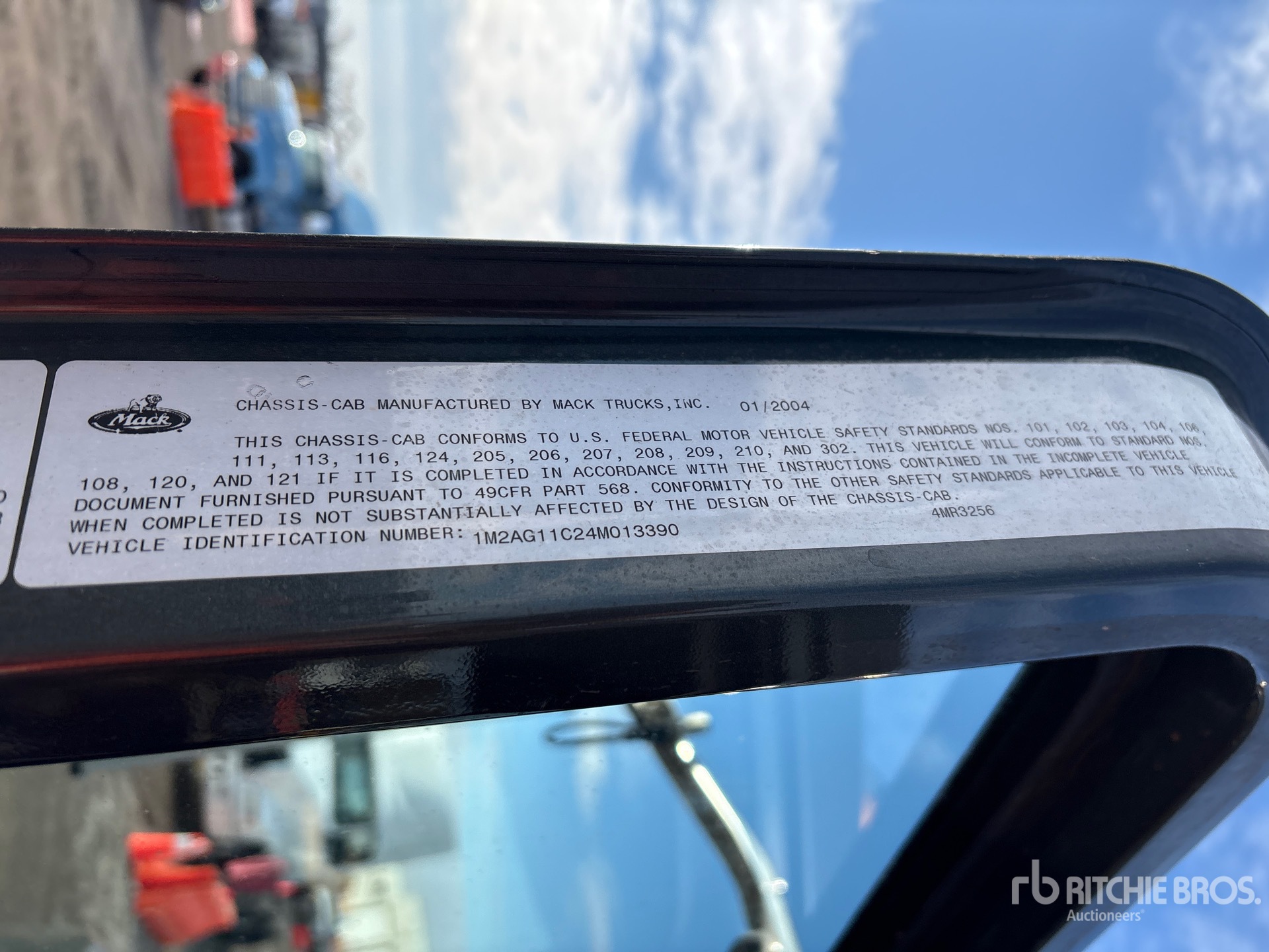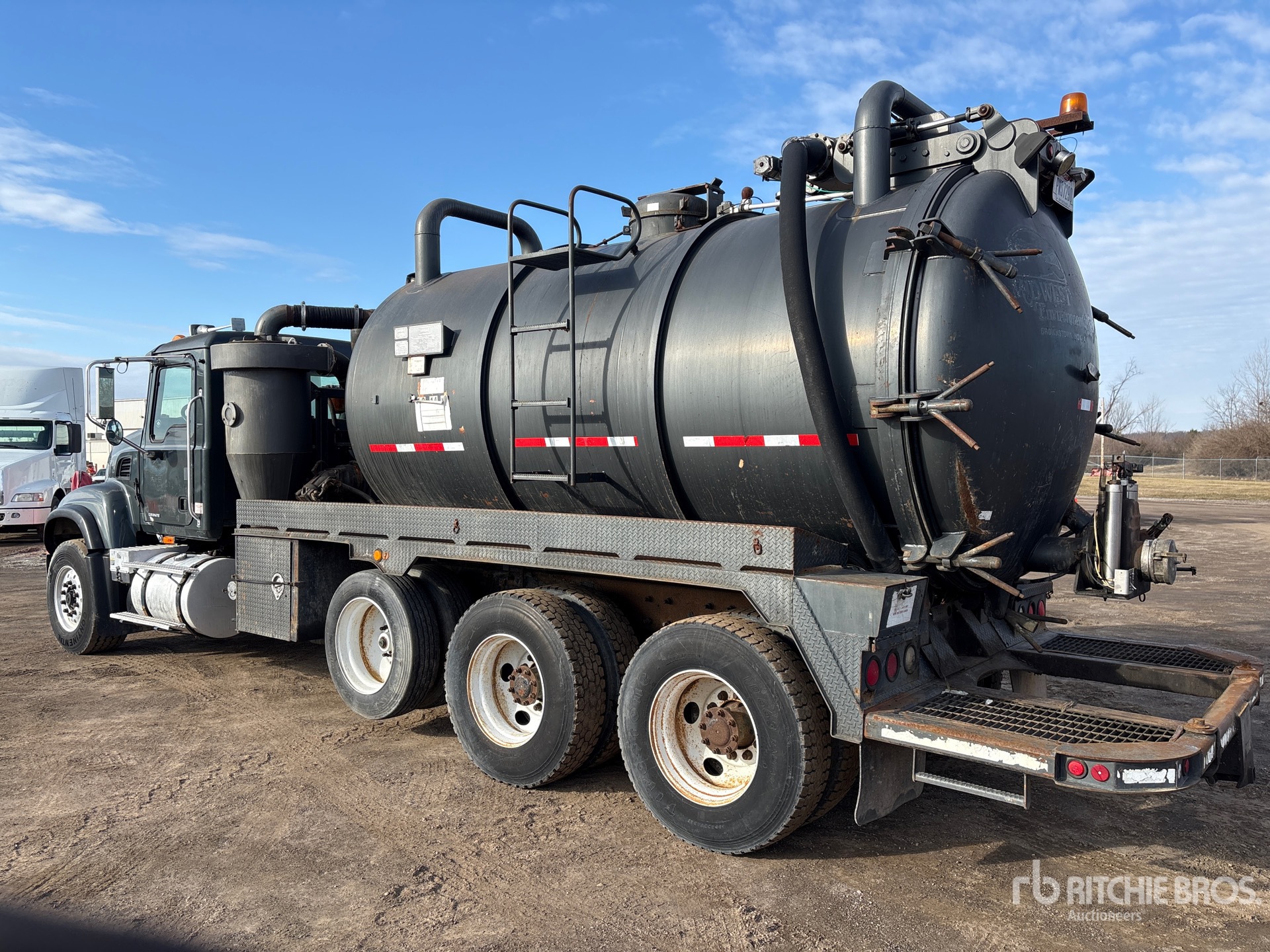 Mack AMI-370 6 Cylinder Diesel Engine, 2004 US EPA Label, 13991 Engine hrs, Manual Transmission, 11R22.5 Front Tires, 11R22.5 Rear Tires, Air Lift Tag Axle, Air Ride Suspension, 228 in Wheelbase, Steel 328 L Debris Tank, 4 in Suction Hose