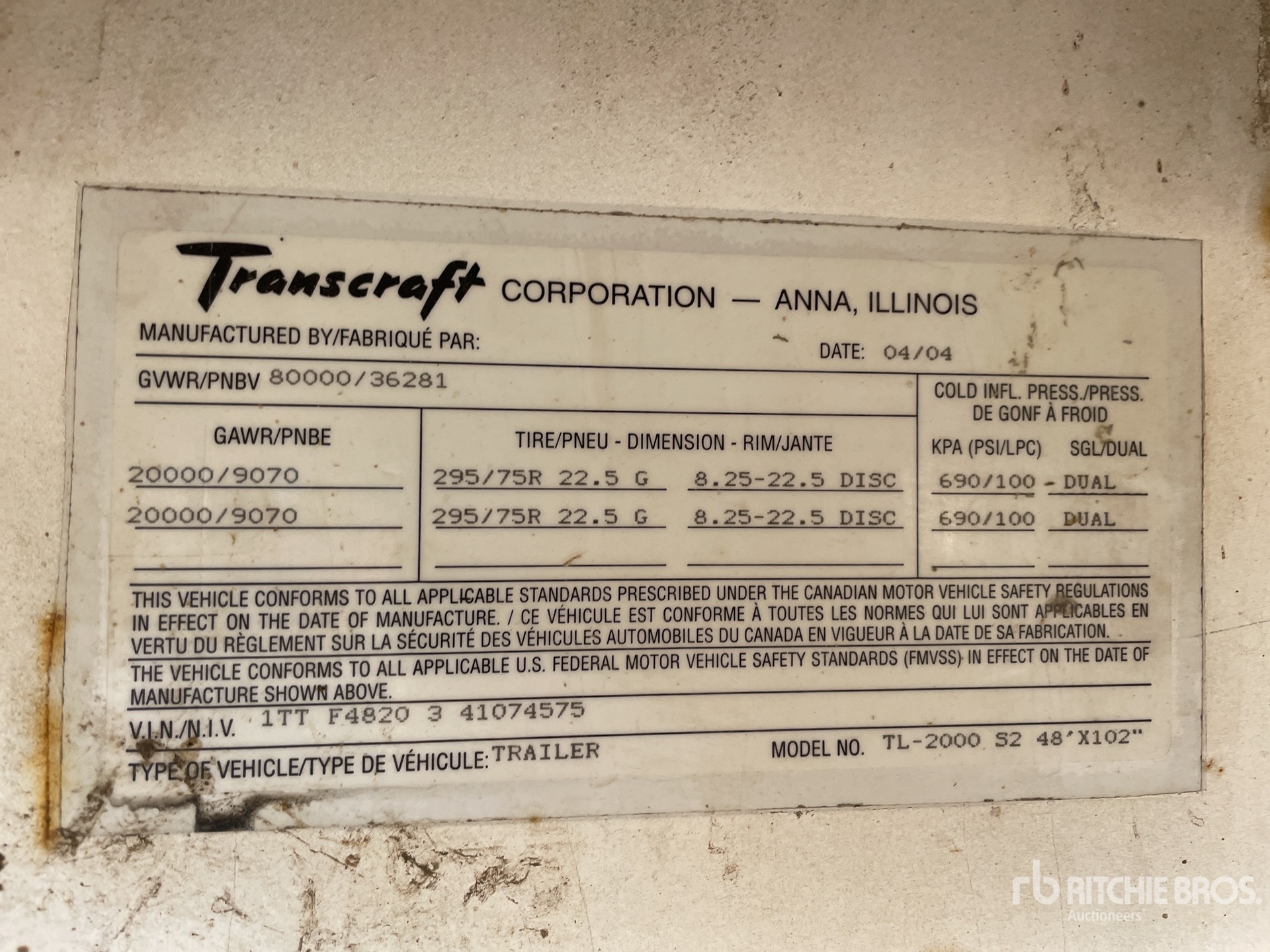 The detailed equipment information is limited in scope, and Ritchie Bros. Auctioneers has not inspected any aspects or components of the equipment other than those expressly set forth herein. Unless expressly stated, we make no representations or warranties, express or implied, concerning the equipment or its components, including without limitation any representations or warranties concerning functionality, conformity or compliance with any safety standard or requirement of any applicable authority or regulatory body, fitness for any particular purpose, or merchantability. You are strongly advised to perform your own detailed inspection of the equipment prior to bidding.