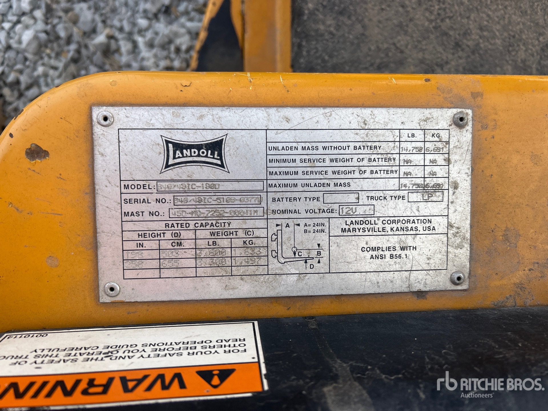 The detailed equipment information is limited in scope, and Ritchie Bros. Auctioneers has not inspected any aspects or components of the equipment other than those expressly set forth herein. Unless expressly stated, we make no representations or warranties, express or implied, concerning the equipment or its components, including without limitation any representations or warranties concerning functionality, conformity or compliance with any safety standard or requirement of any applicable authority or regulatory body, fitness for any particular purpose, or merchantability. You are strongly advised to perform your own detailed inspection of the equipment prior to bidding.