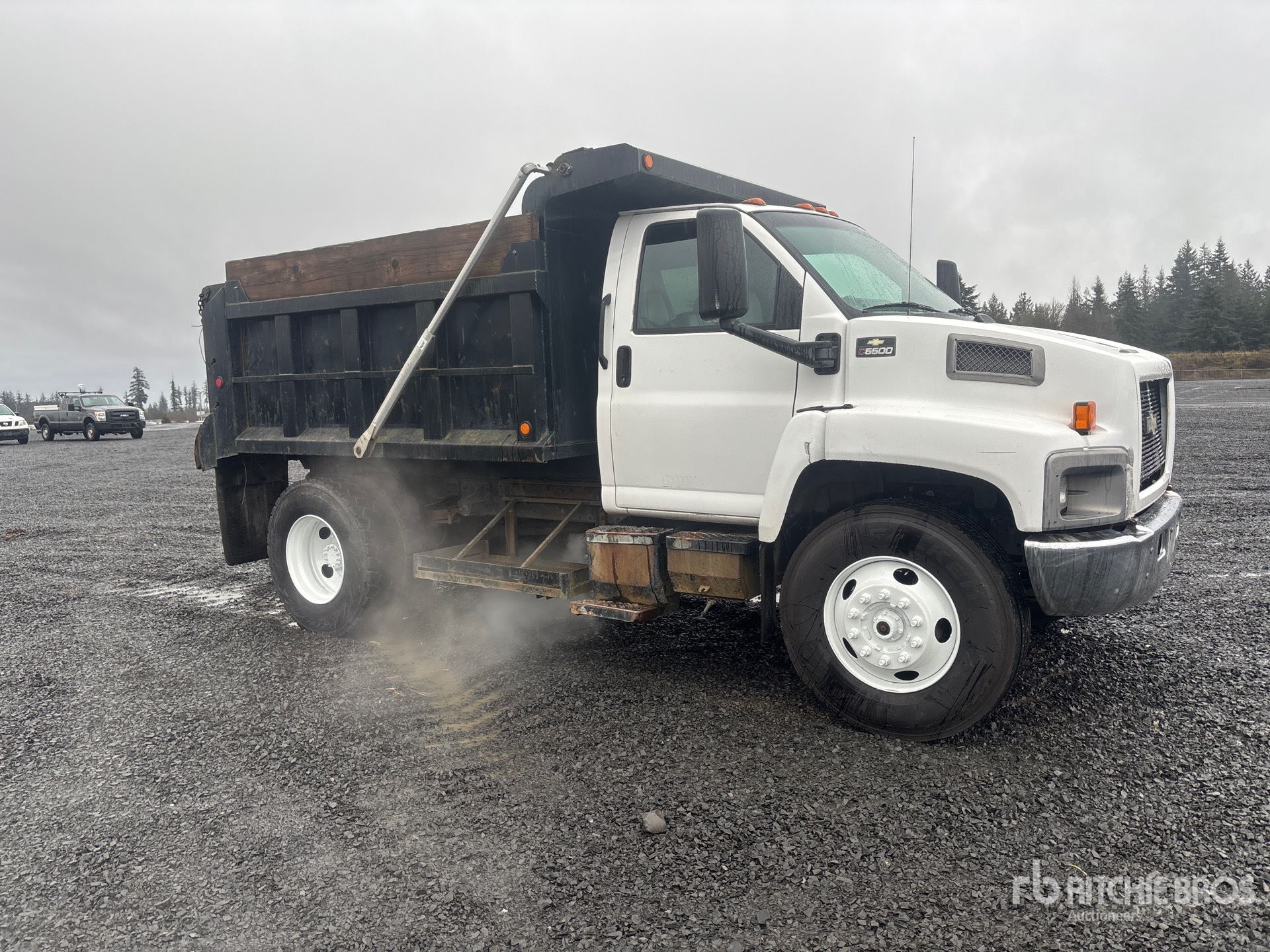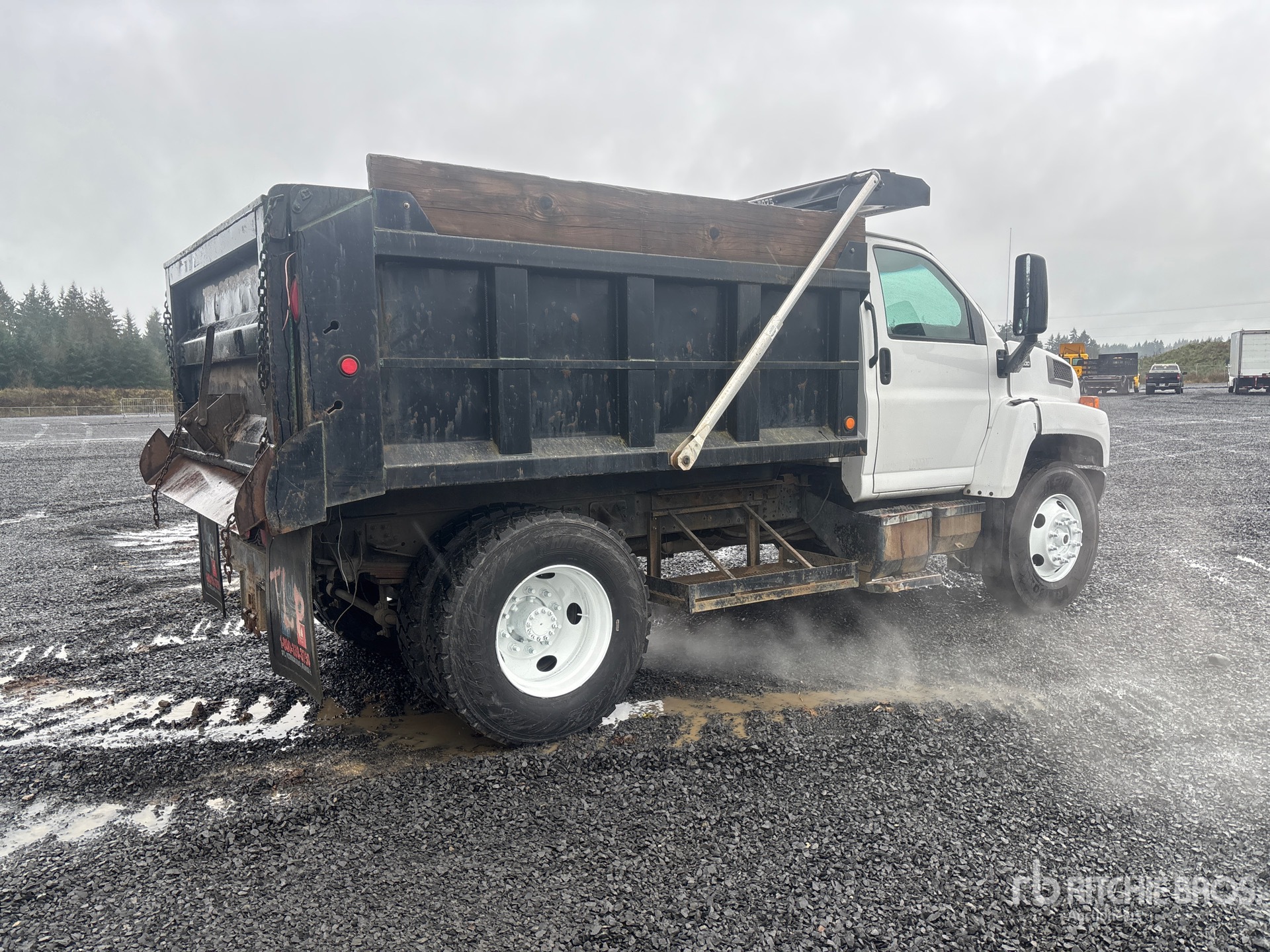 Located in Lane 9 Spot 124, V8 Gasoline Engine, 5x2 Manual Transmission, 10000 lb Front Axle, 19000 lb Rears, 25950 lb GVWR, 11R22.5, Spring Suspension, 153 in Wheelbase, Ox Bodies 10 ft Long Steel Body, Electric Roll Tarp, Tailgate Chute